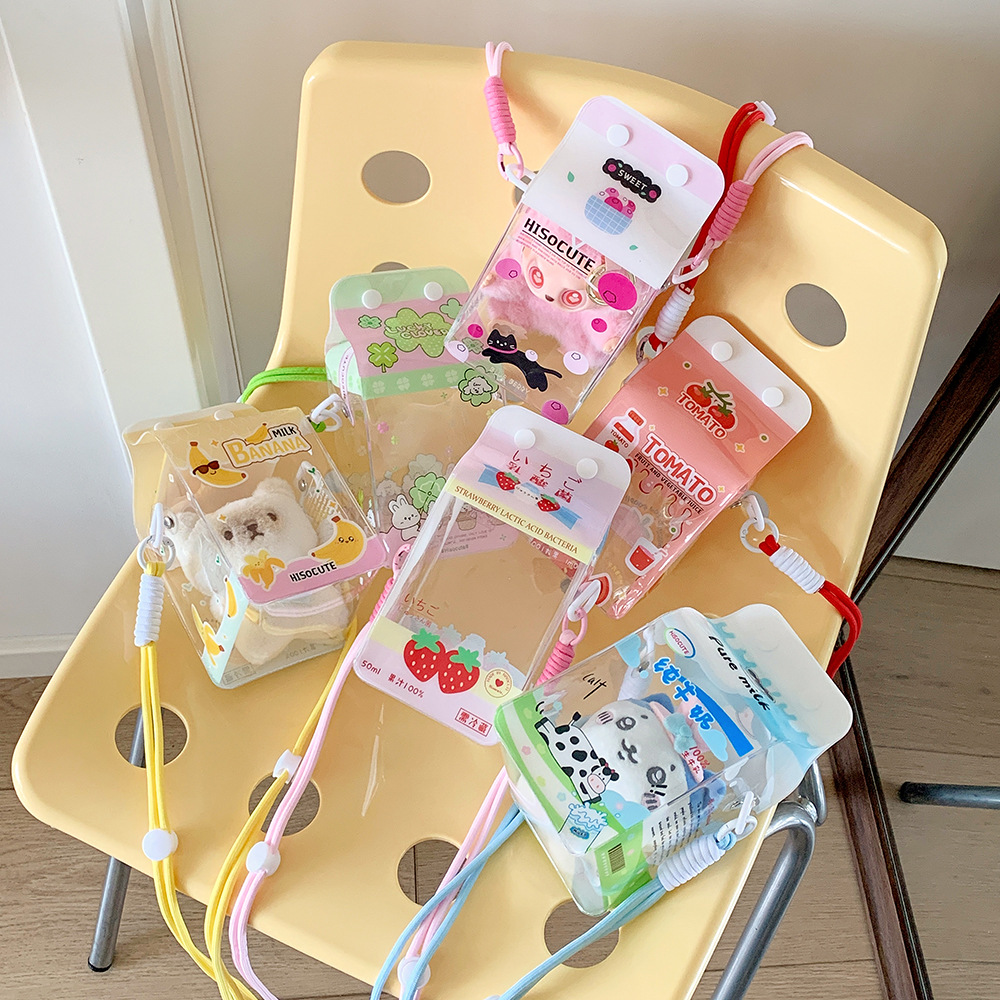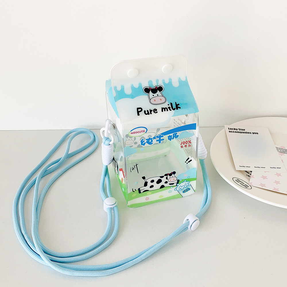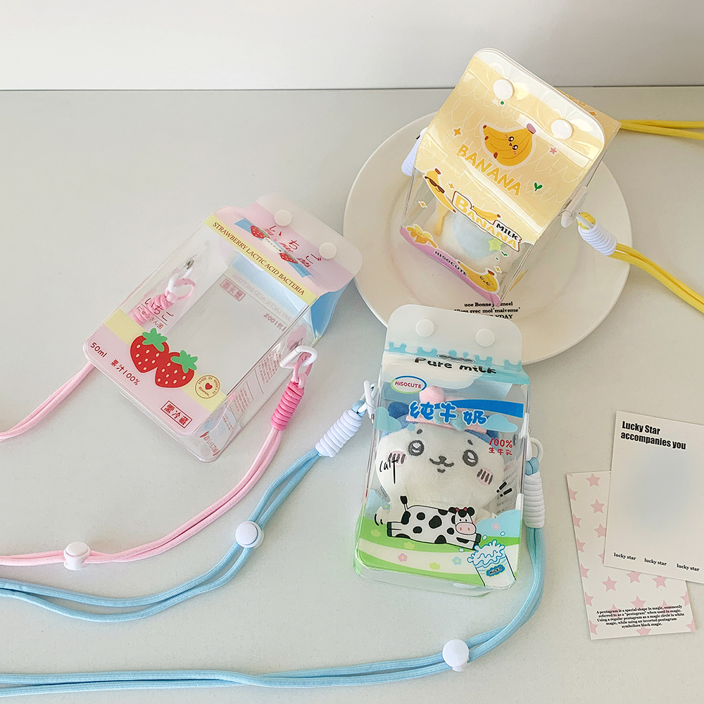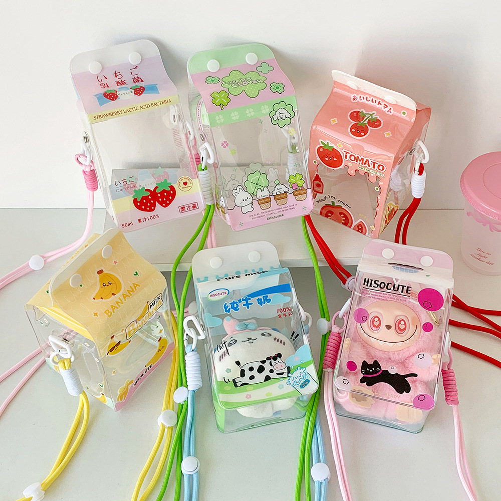 ins卡通小痛包可爱牛奶盒透明娃包遛娃包玩偶棉花娃娃展示收纳包