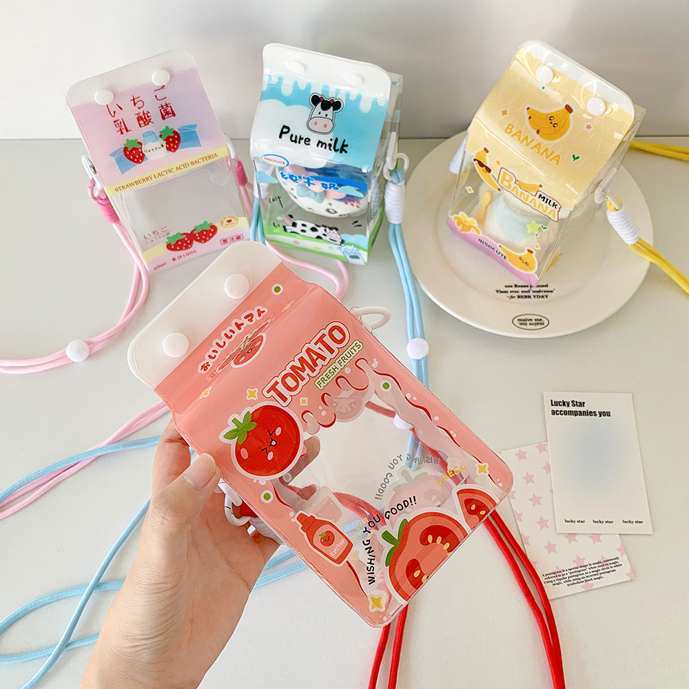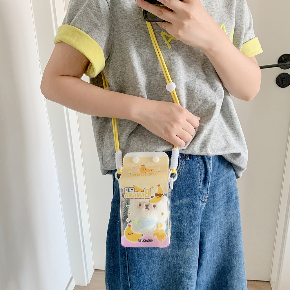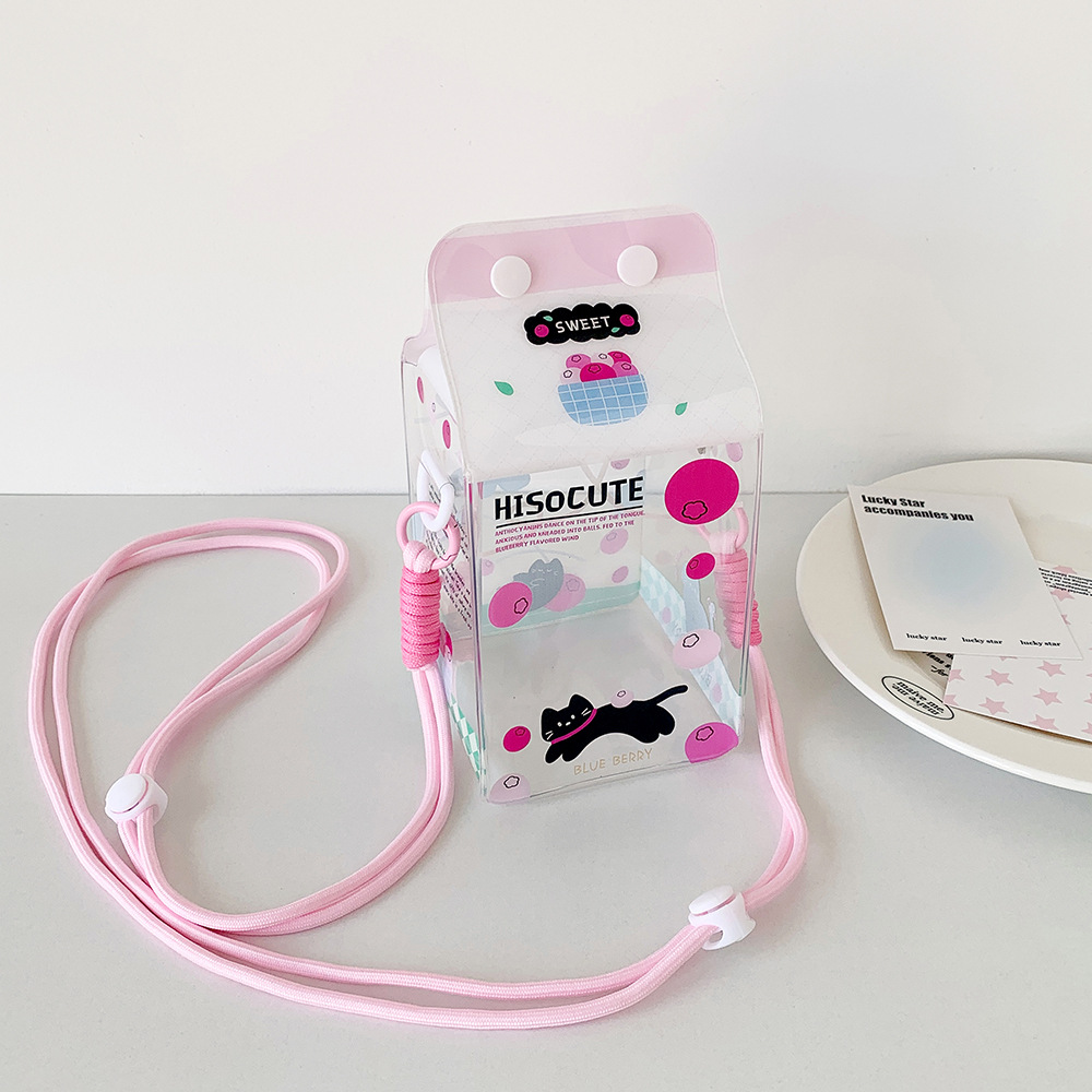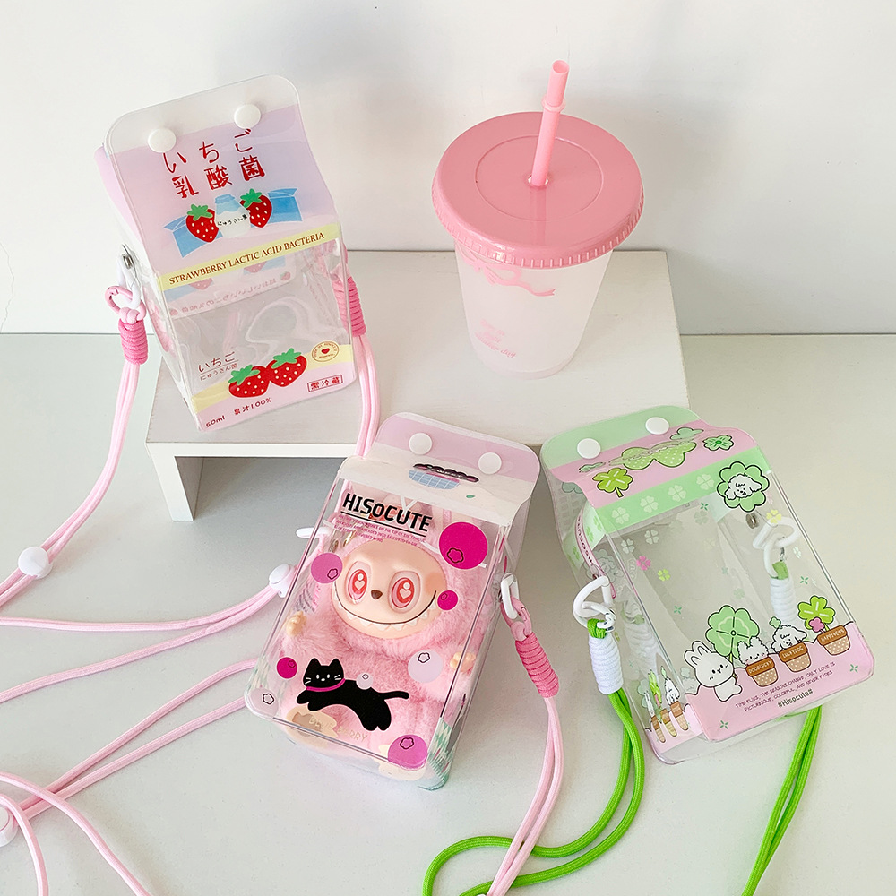 ins卡通小痛包可爱牛奶盒透明娃包遛娃包玩偶棉花娃娃展示收纳包
