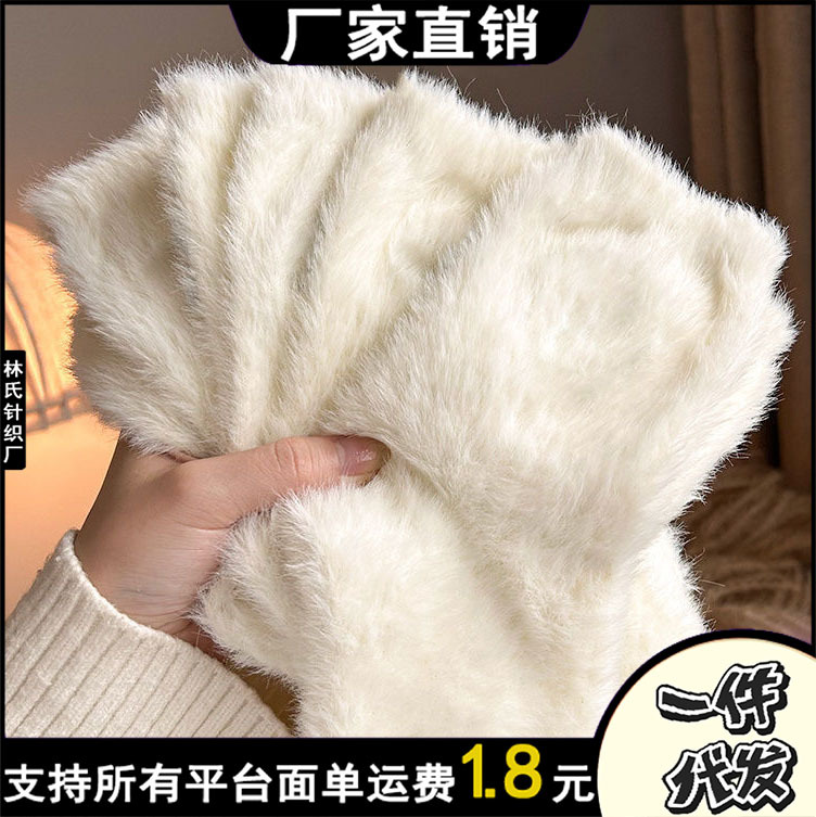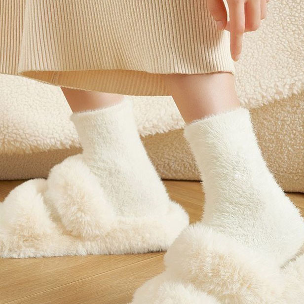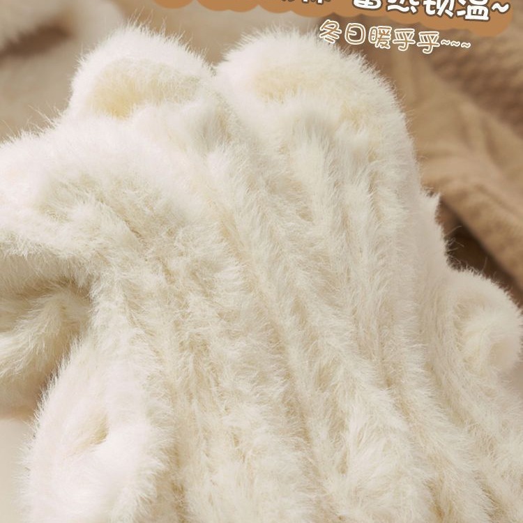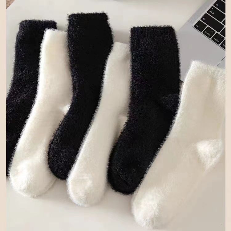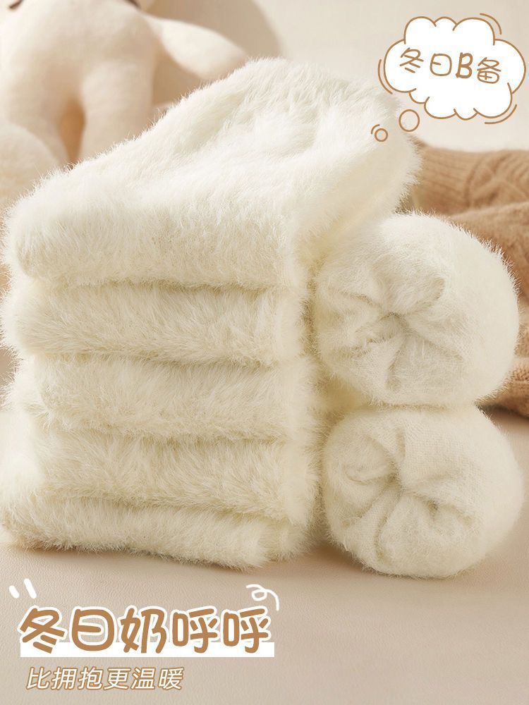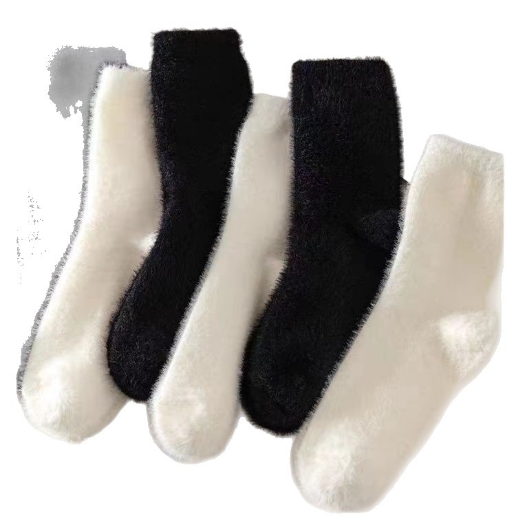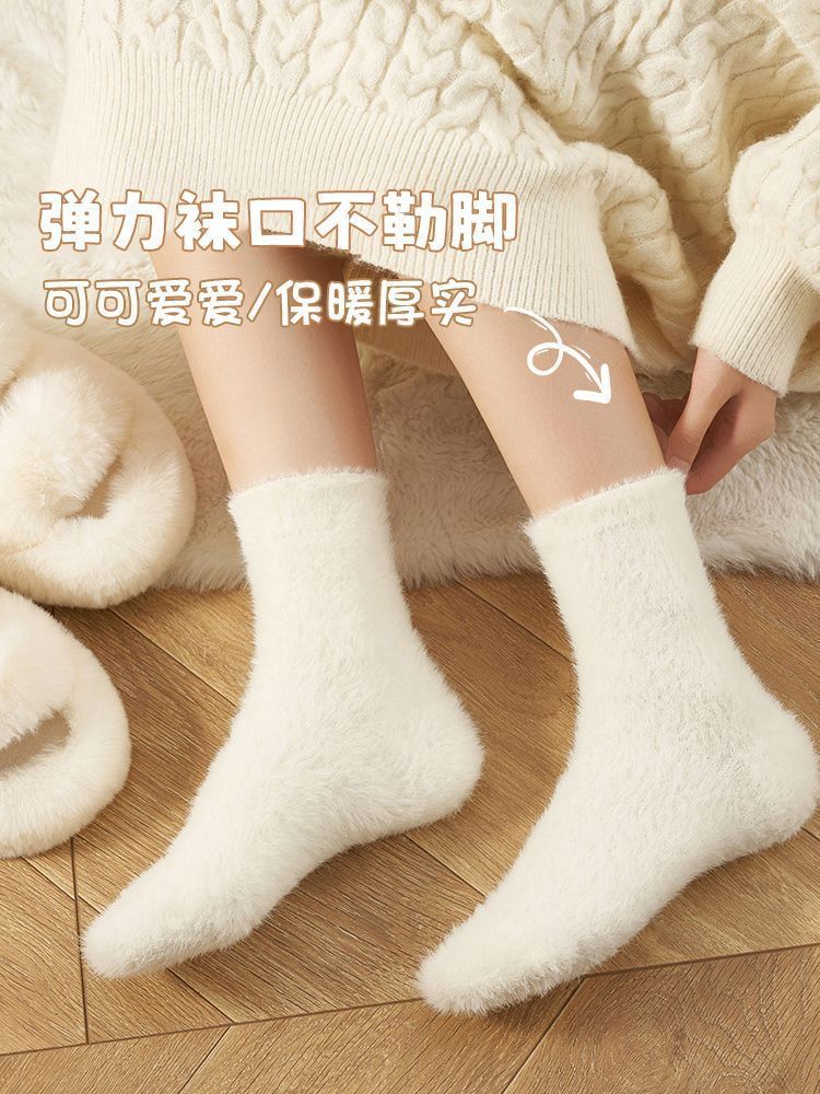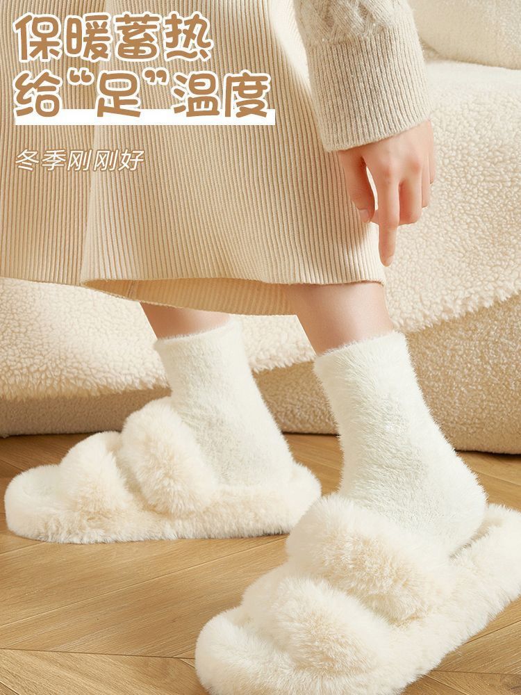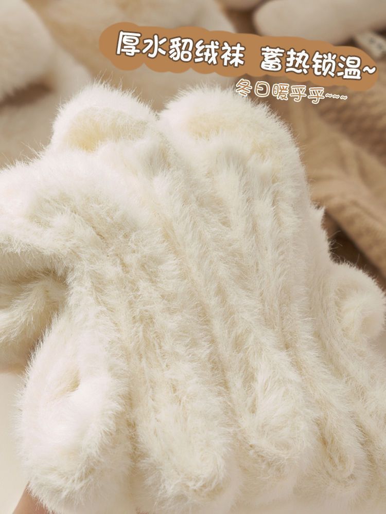 防滑袜子女水貂绒中筒防寒袜加绒加厚毛茸茸白色月子袜保暖毛毛袜