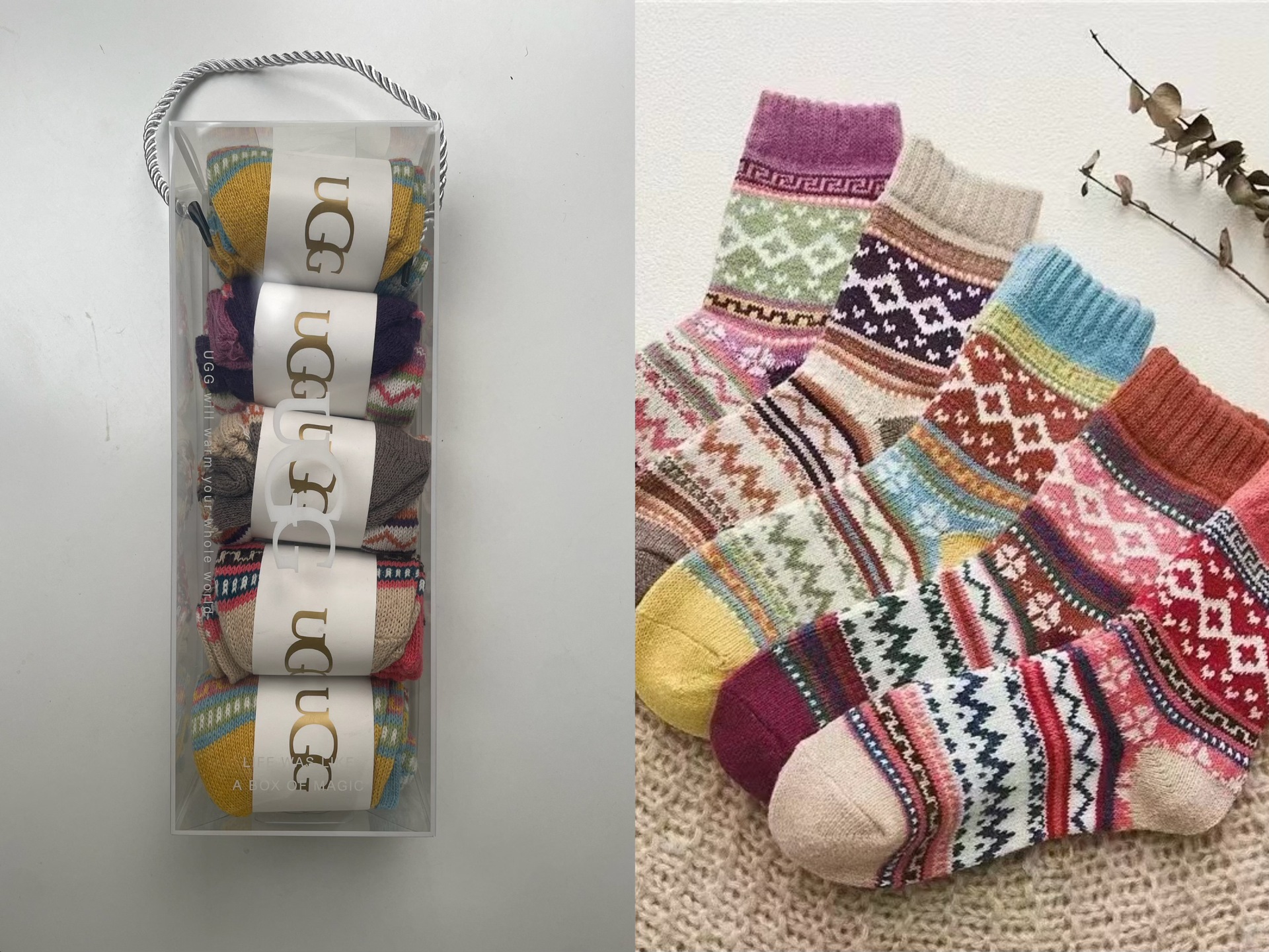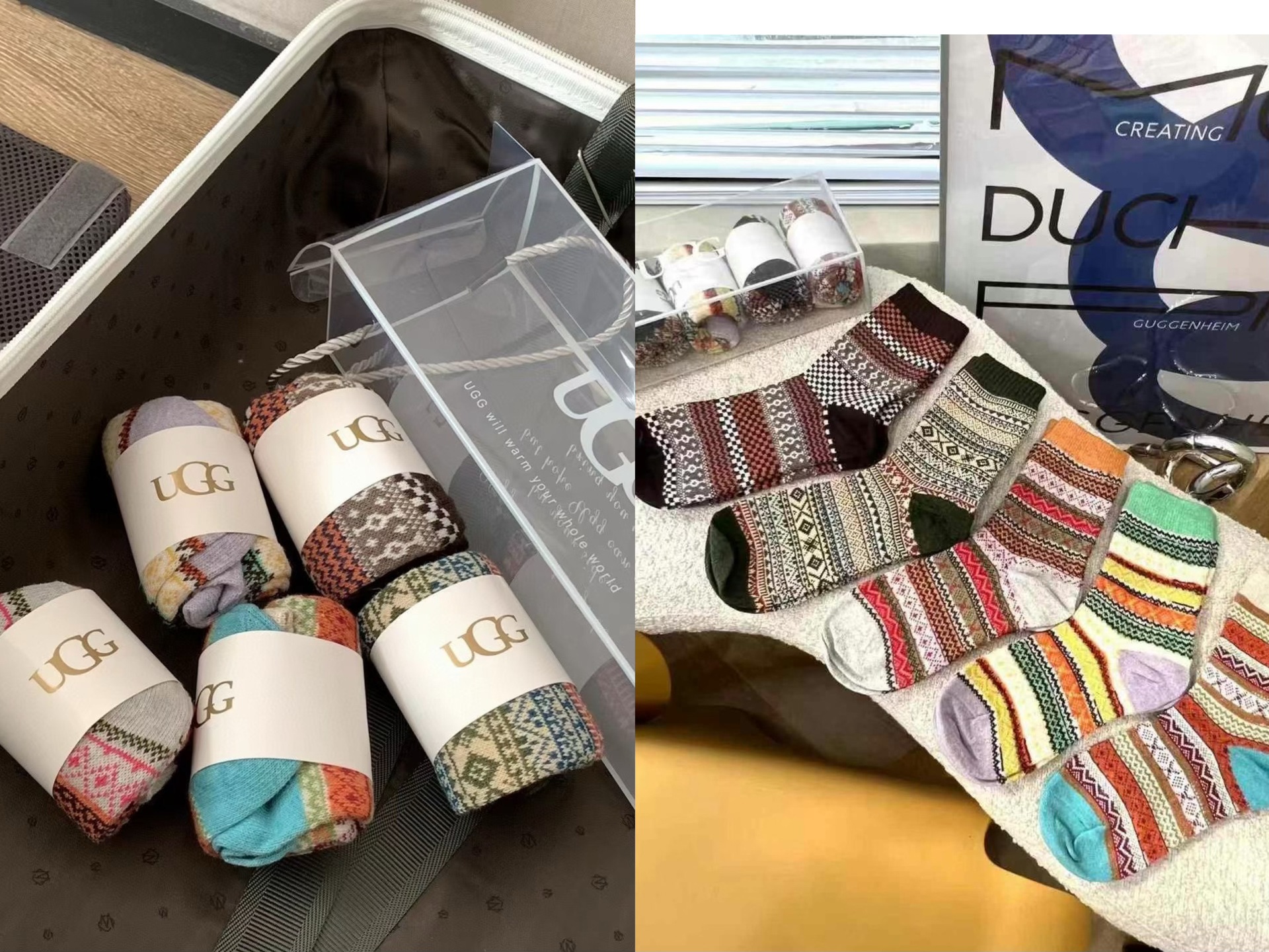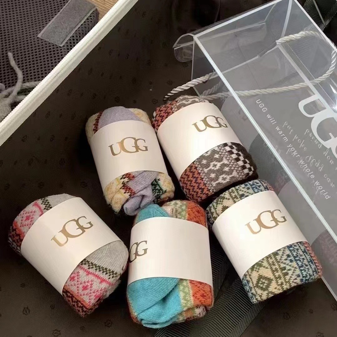 油ug图腾袜彩虹袜保暖gg羊毛袜高筒地板袜雪地袜子礼盒装批发代发