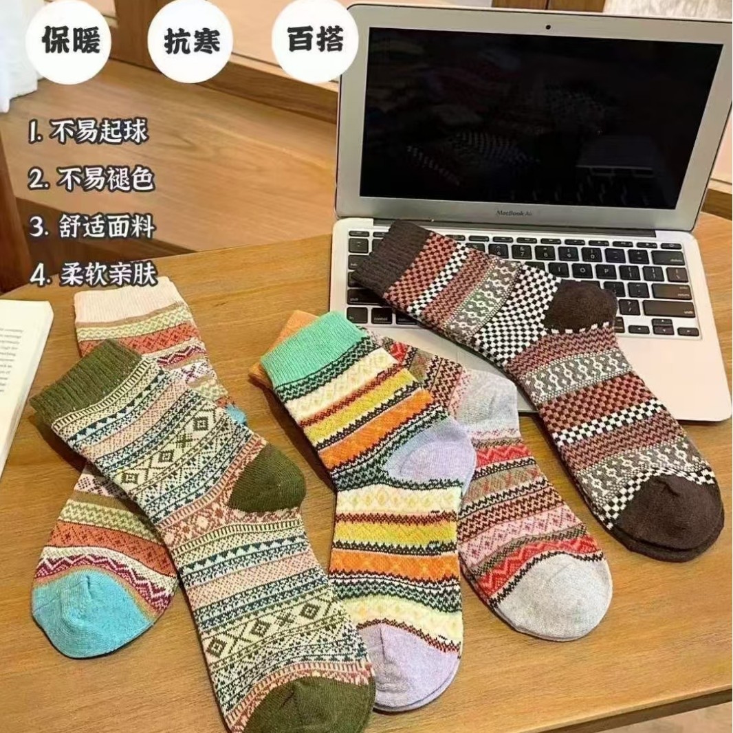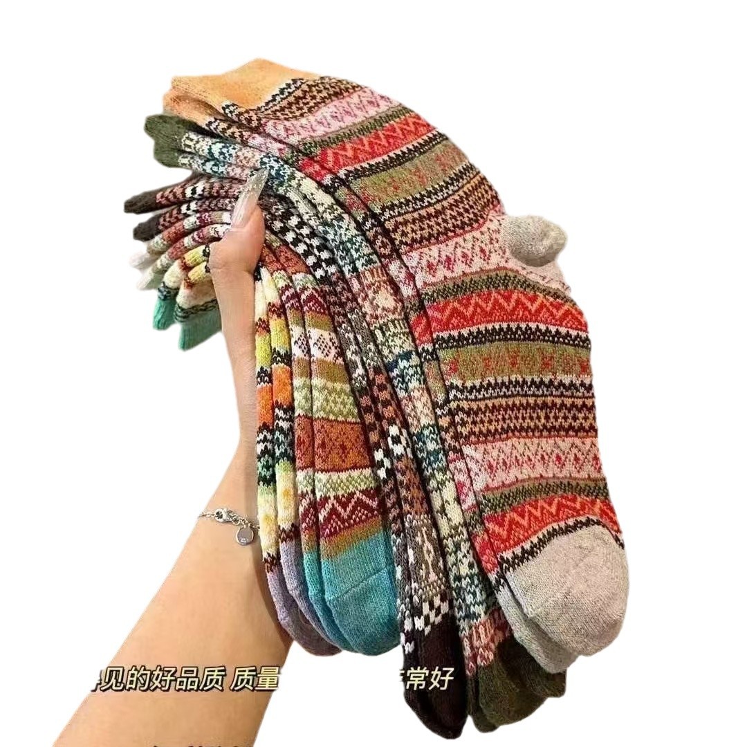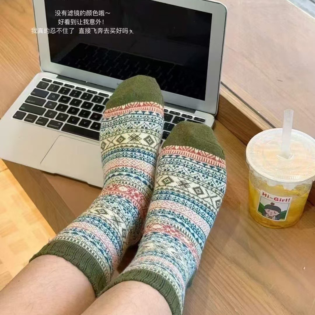 油ug图腾袜彩虹袜保暖gg羊毛袜高筒地板袜雪地袜子礼盒装批发代发