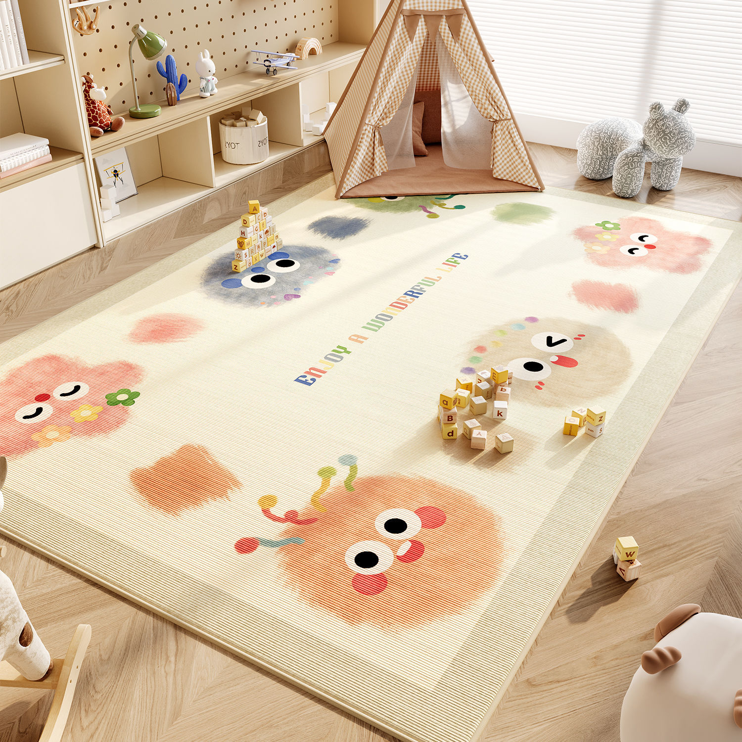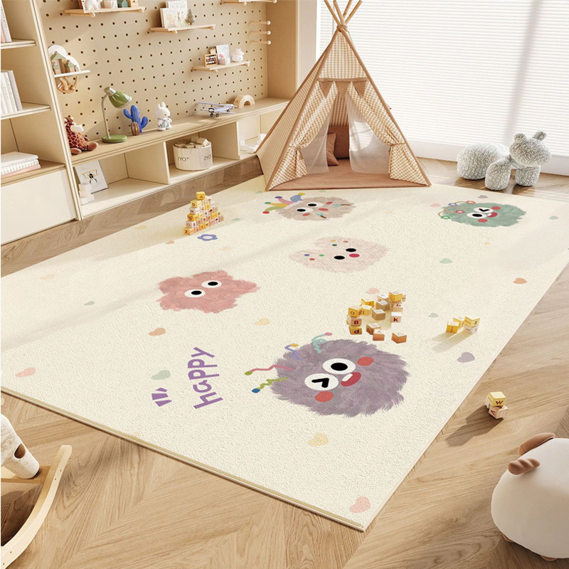 彩色毛球卡通地毯儿童房宝宝娱乐玩耍爬行垫子卧室大面积满铺地毯