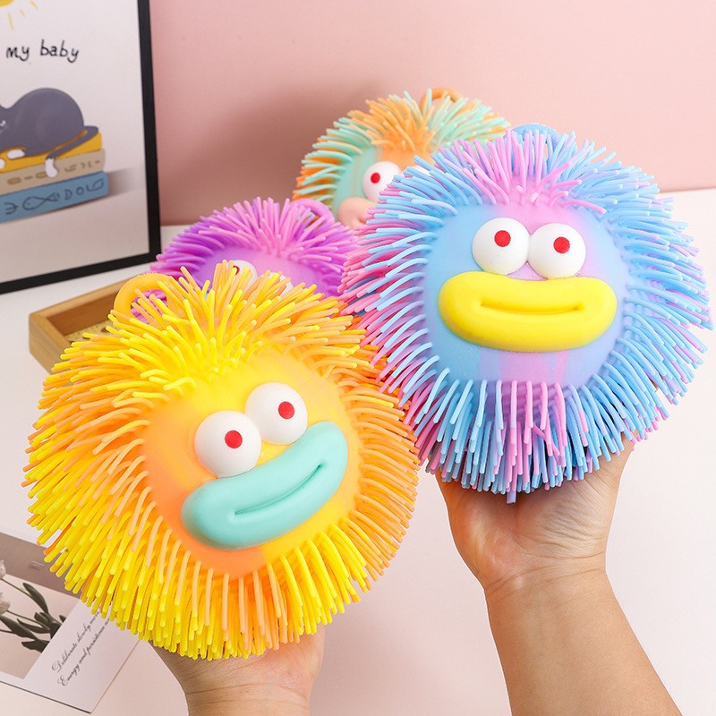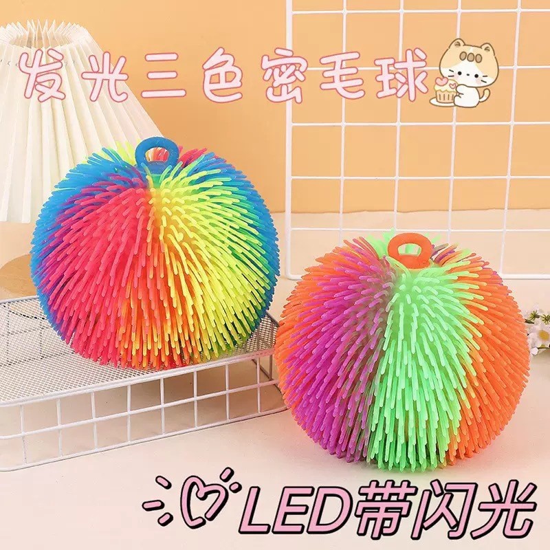 厂家直供雪花闪光球发泄解压发光玩具创意新款凸眼雪花七彩毛毛球