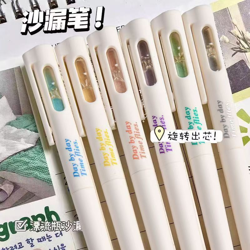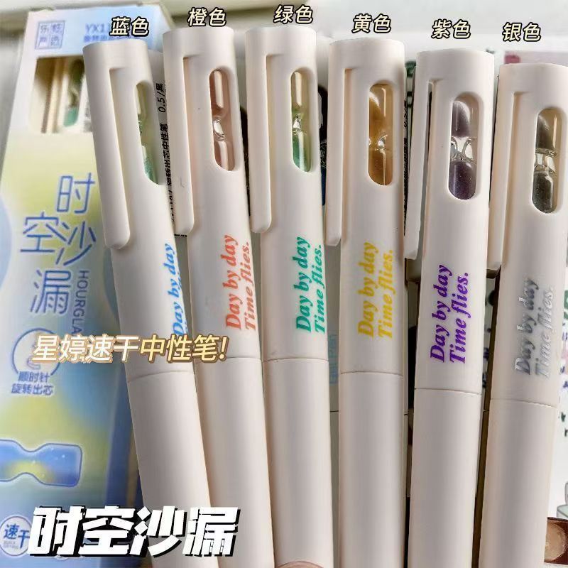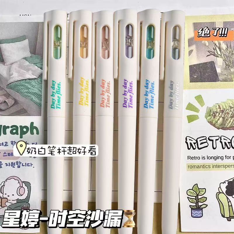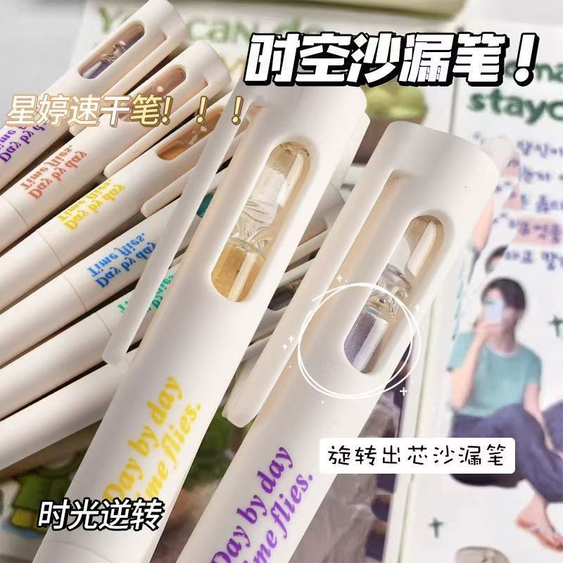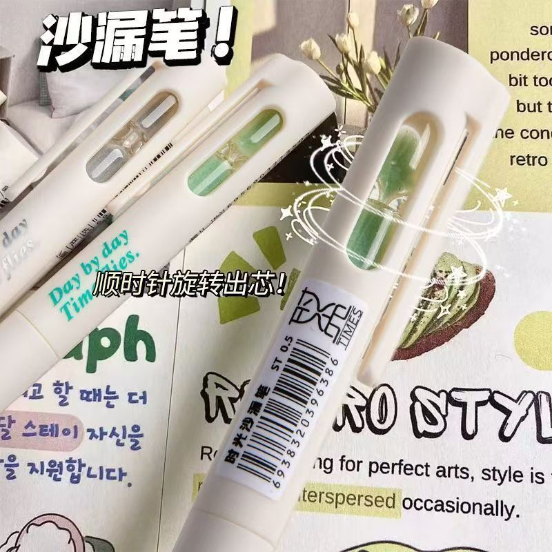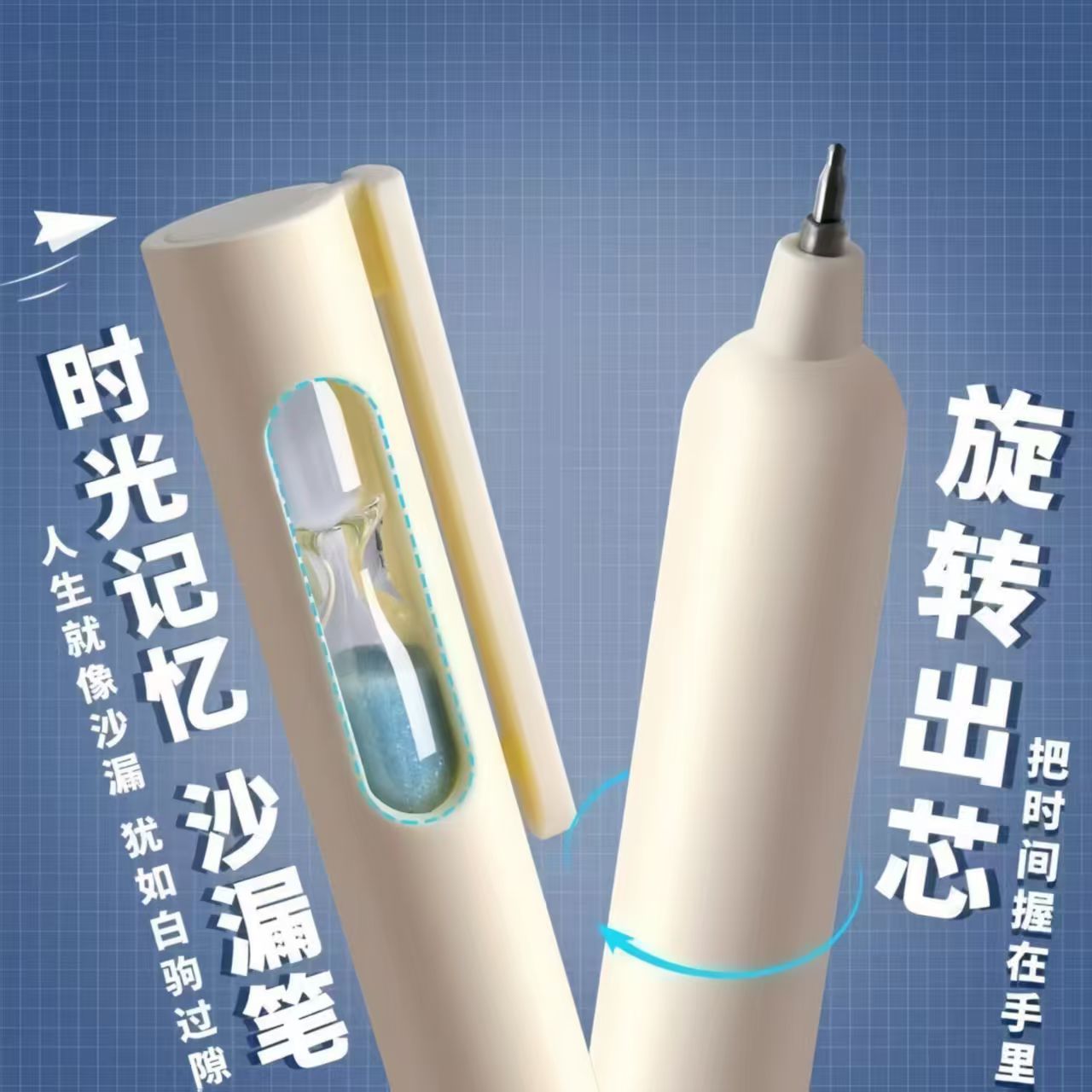 限定时间沙漏中性笔ins黑色旋转出芯刷题笔0.5学生考试专用碳素笔