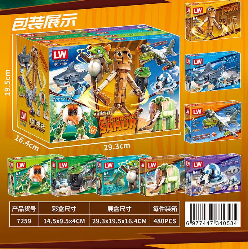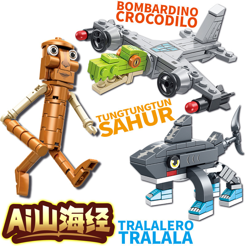 7259AI山海经兼容乐高积木TungTungSahur通通通哥木棍人拼装玩具