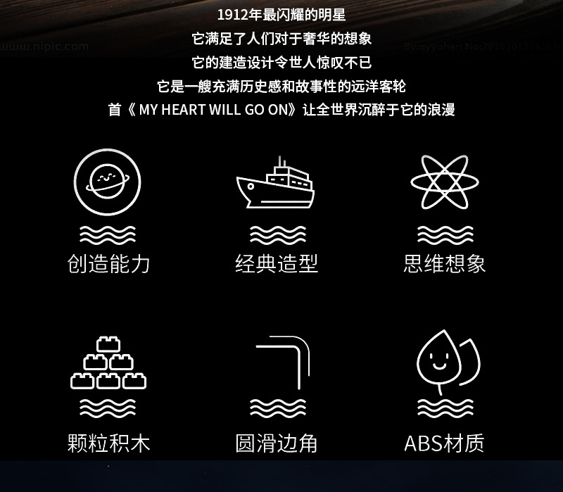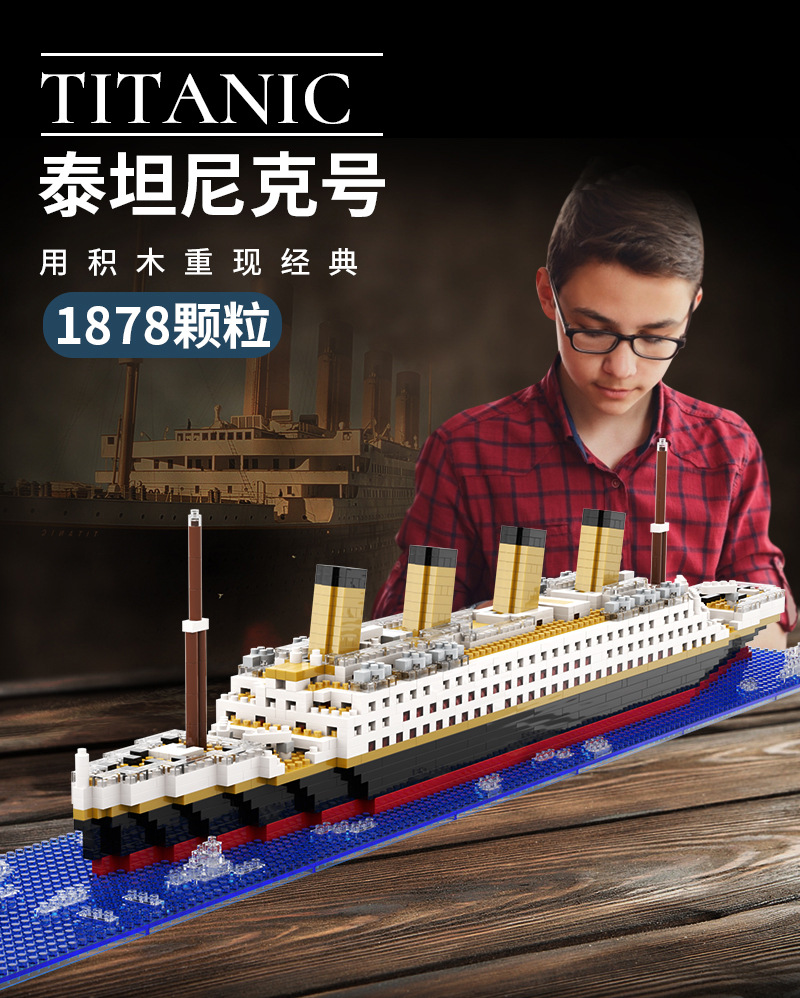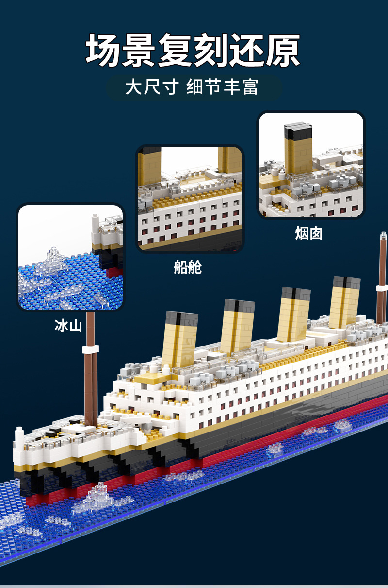 积慧M2027泰坦尼克号兼容乐高积木拼装儿童益智玩具男孩礼物跨境