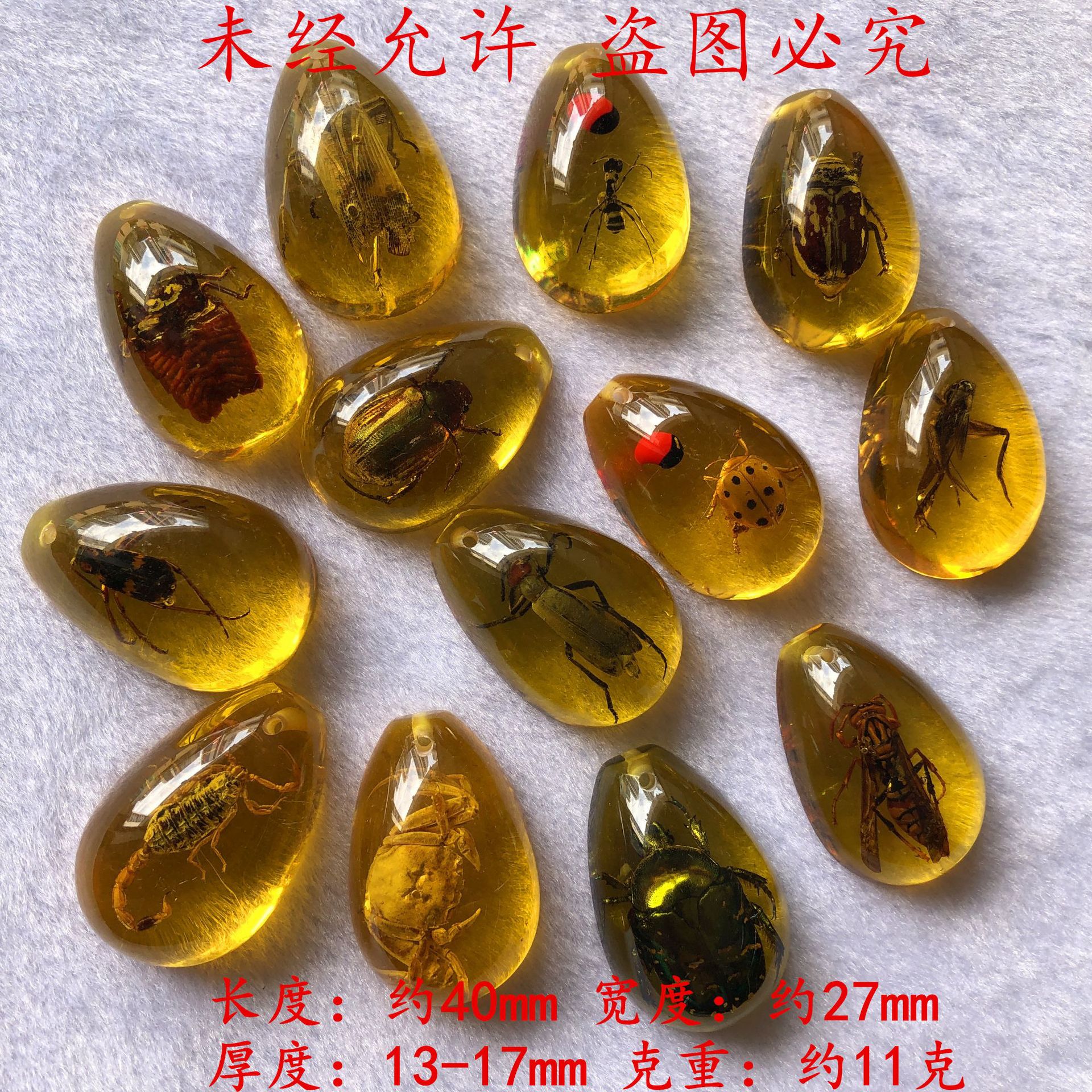 严选昆虫琥珀标本蝎子知了盲盒儿童礼物课本学习挖掘考古吊坠配件