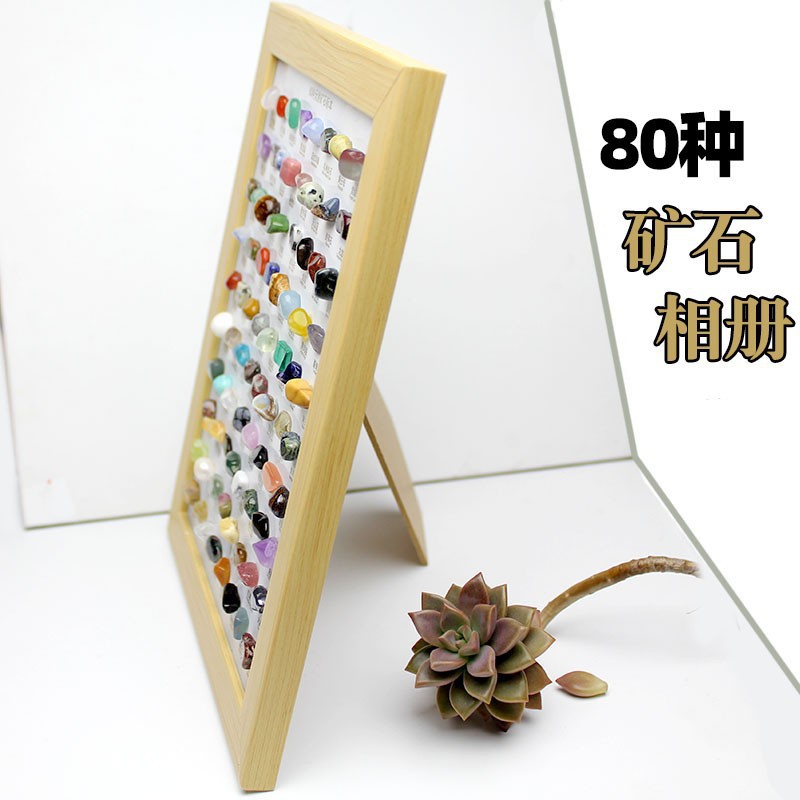 80种天然原石矿石标本相框盒矿物晶体石头摆件孩子地质探索