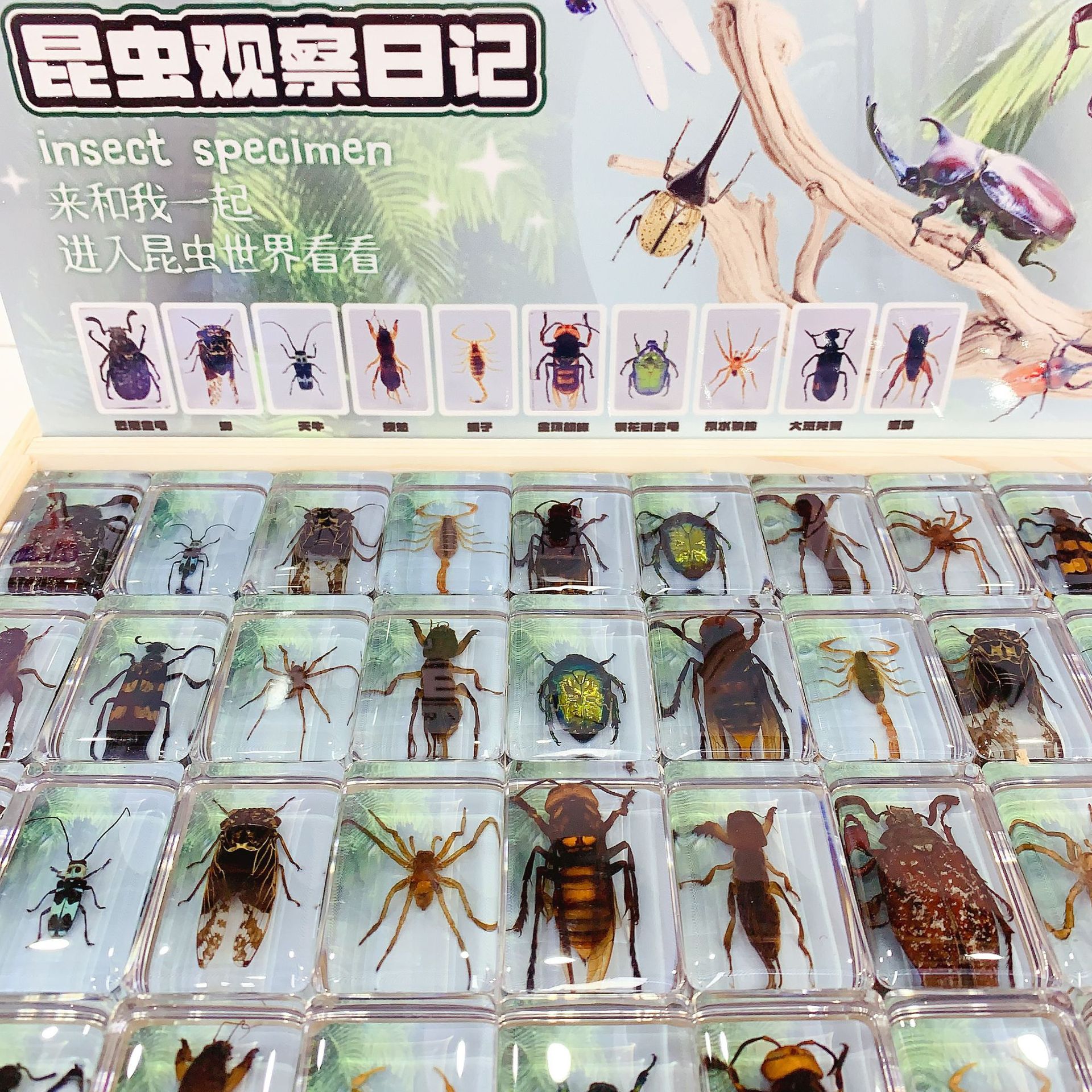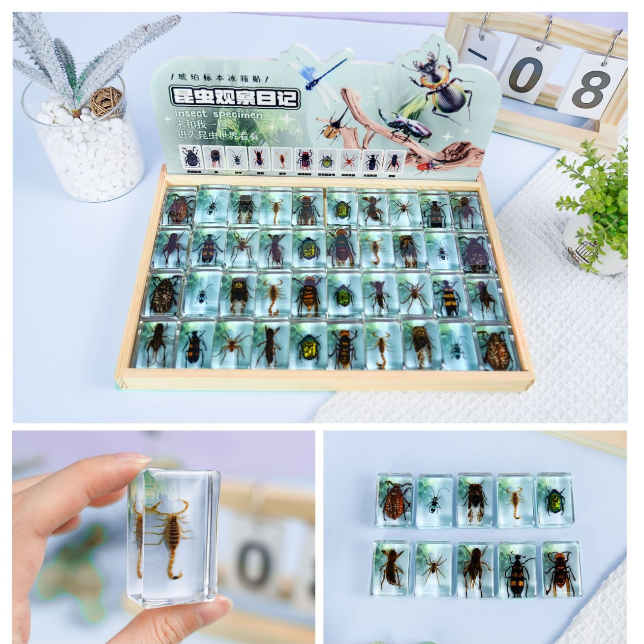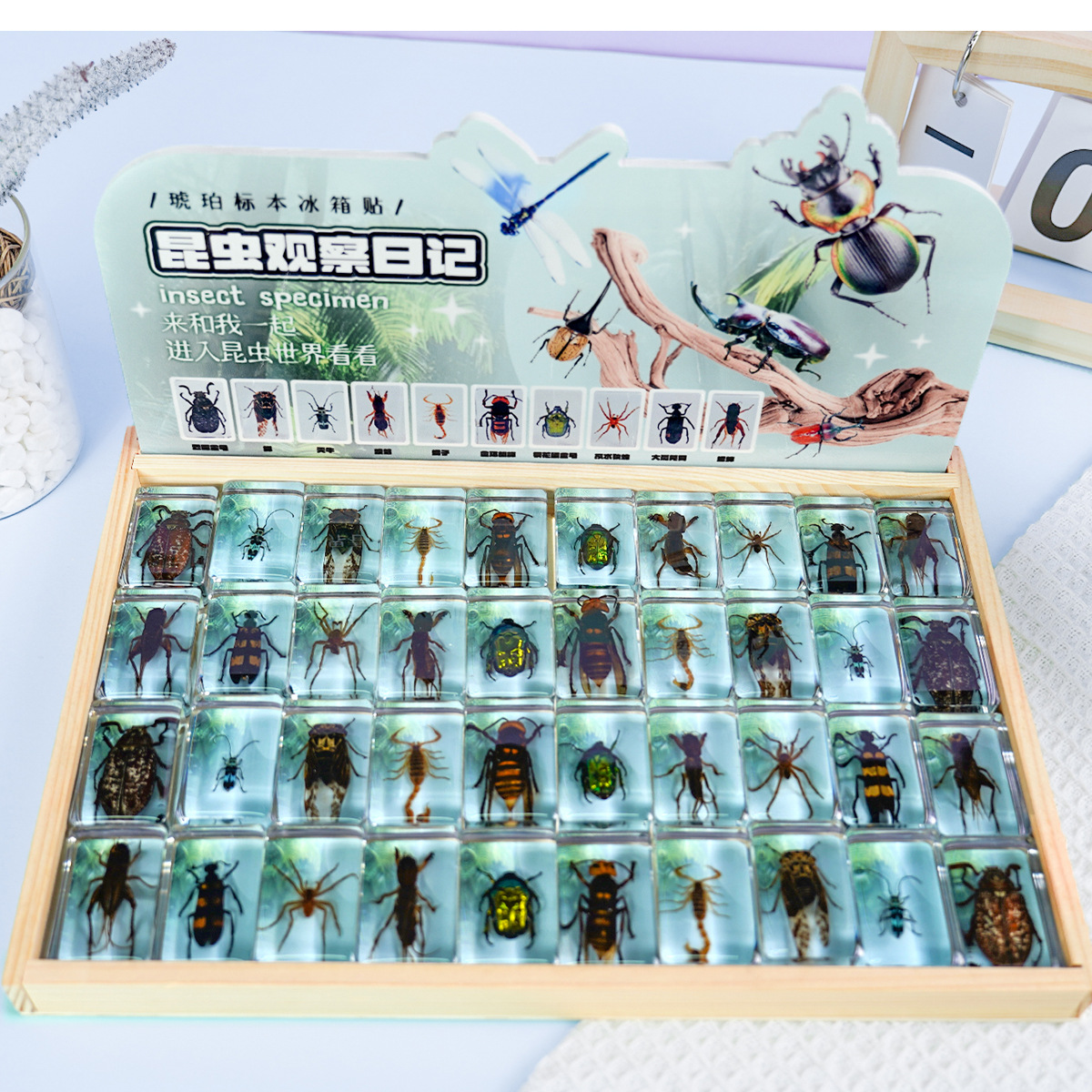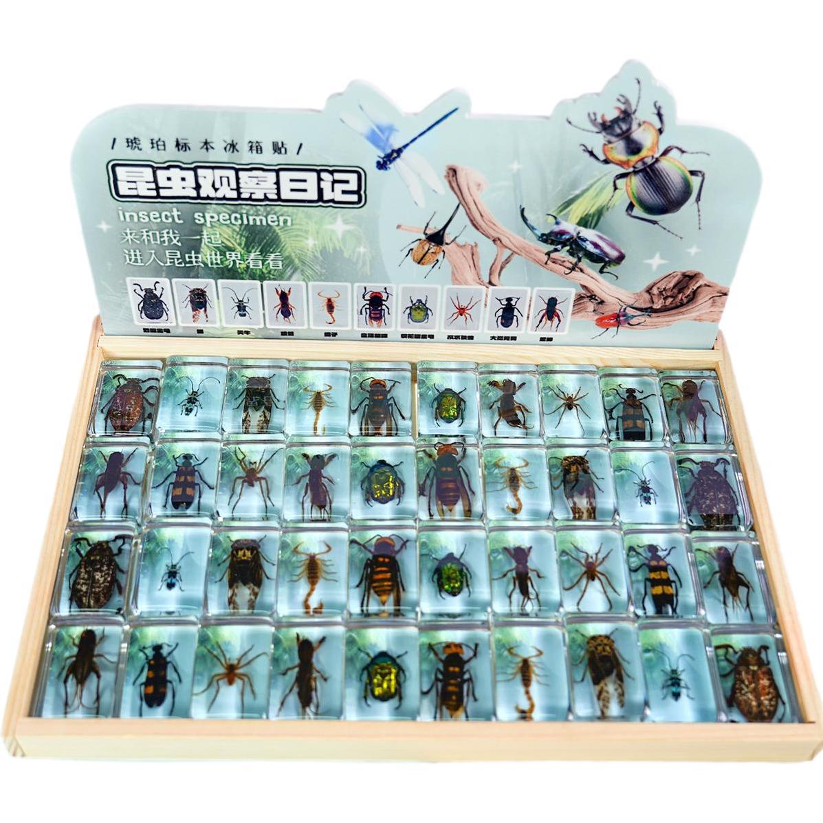 昆虫琥珀标本冰箱贴创意小摆件幼儿园教学观察蜘蛛甲虫科学标本贴