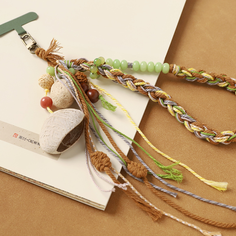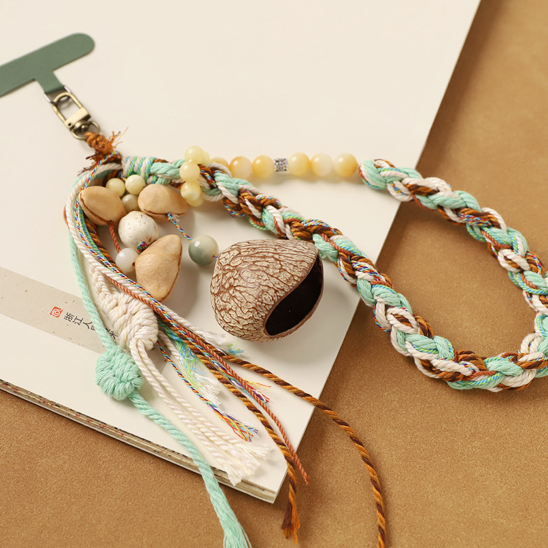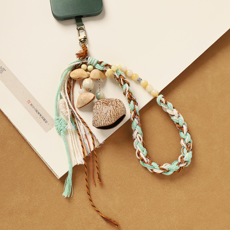天然果壳摇铃手机链植物种子手工编织防丢挂绳挂件森系复古包挂饰
