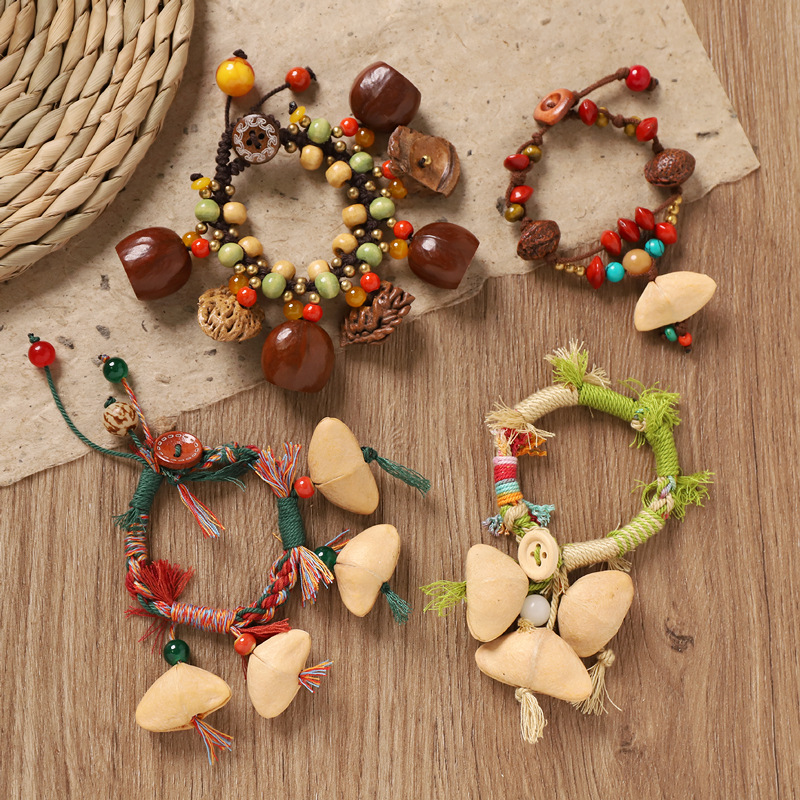天然植物果壳编织手链手摇铃复古小众风铃音疗手串女森系手绳配饰