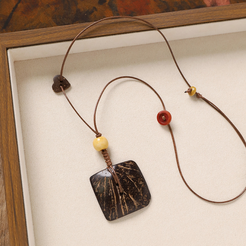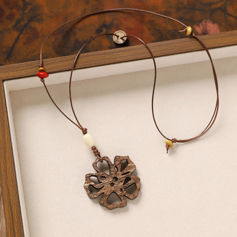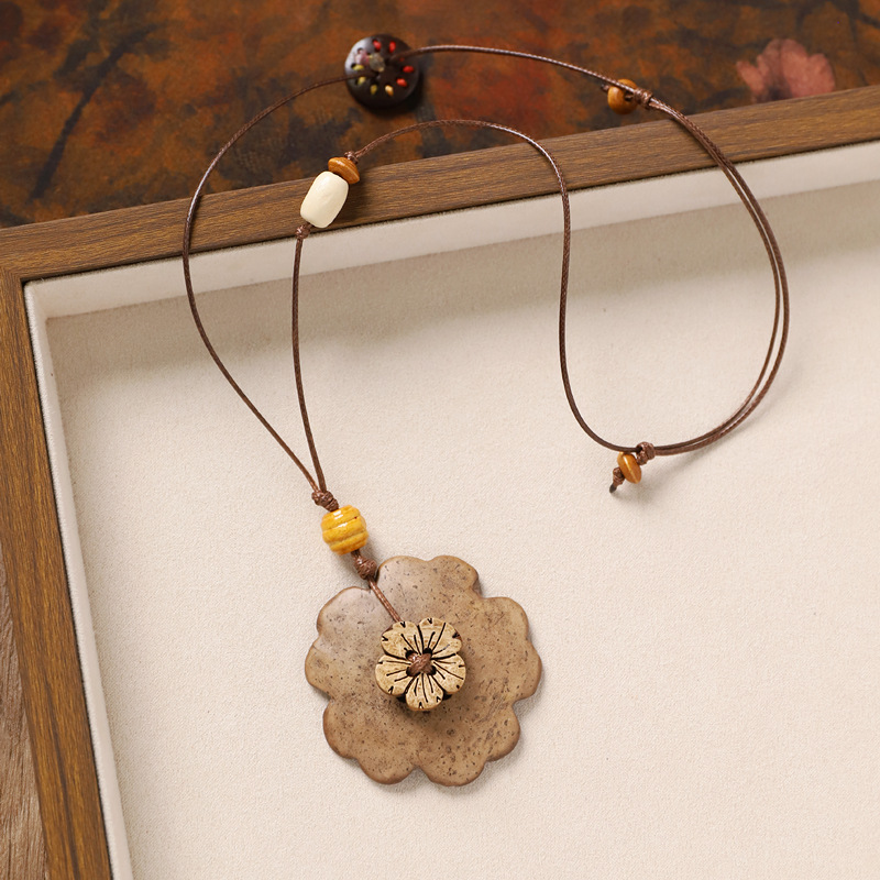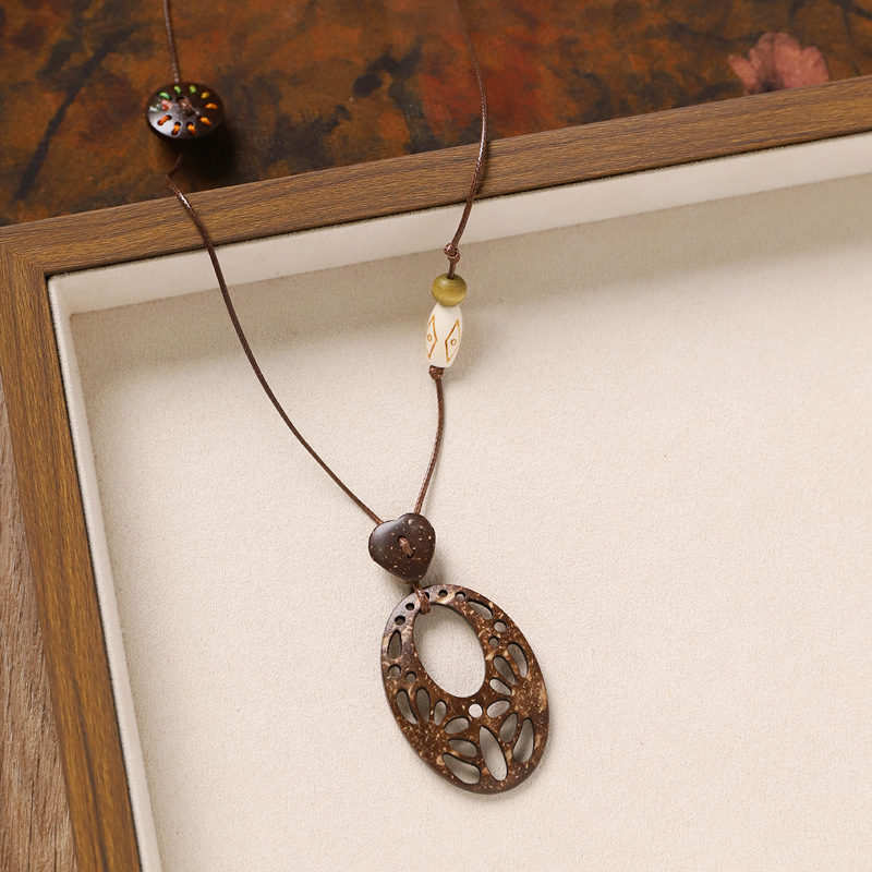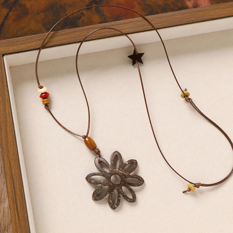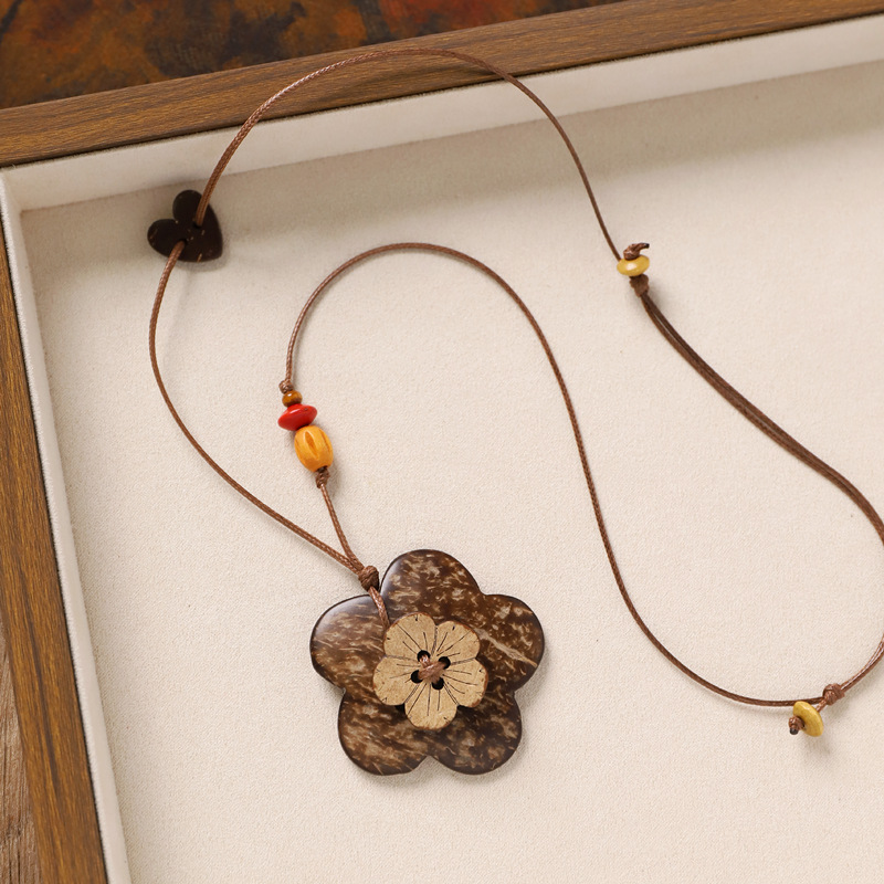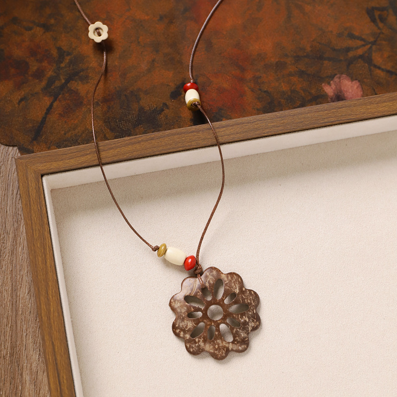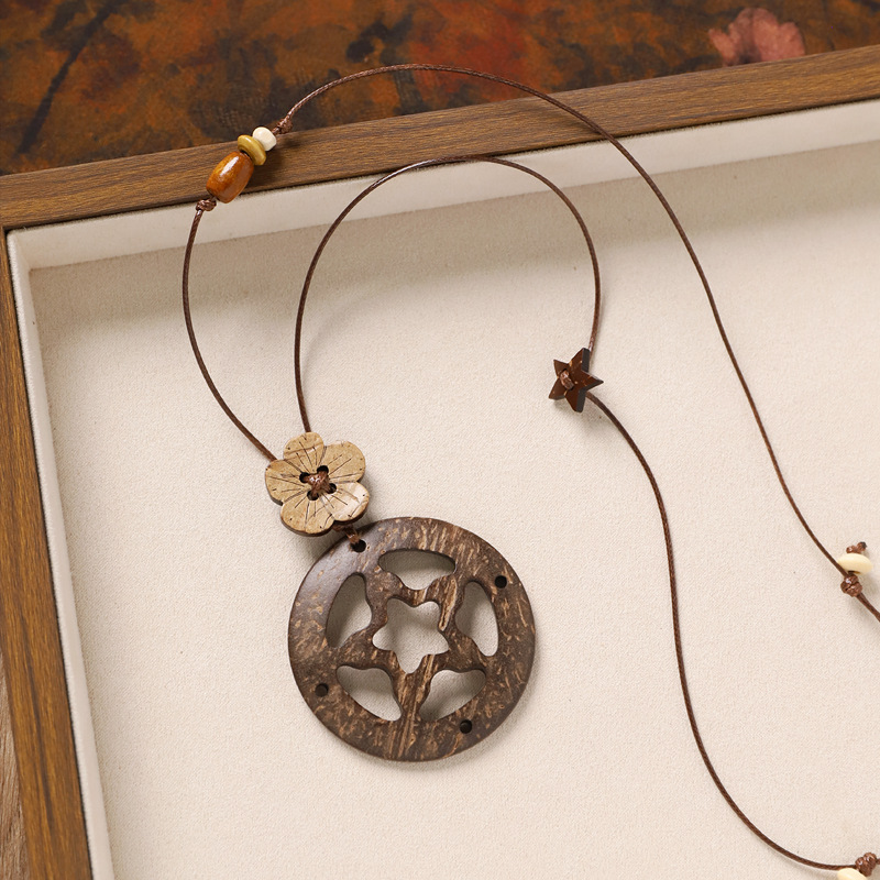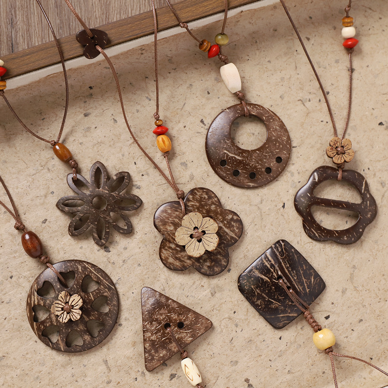 复古风椰壳纽扣项链小众设计编织长款花朵几何毛衣链女新中式配饰