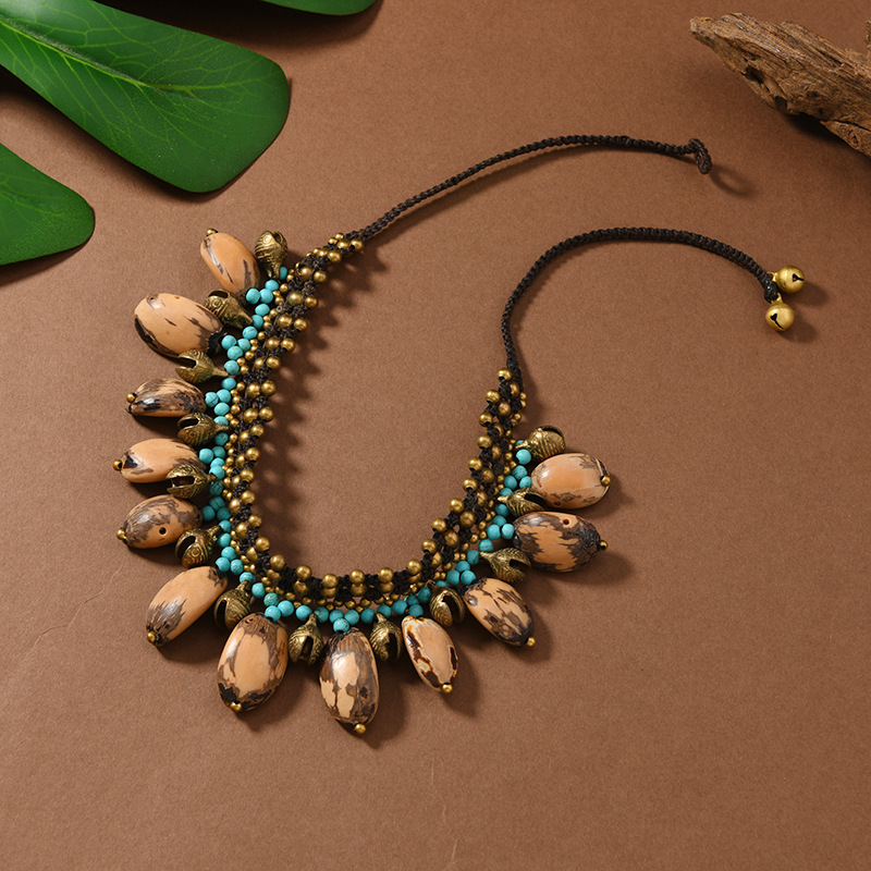 民族风菩提果编织项链复古部落小众设计个性铃铛果实锁骨链女配饰