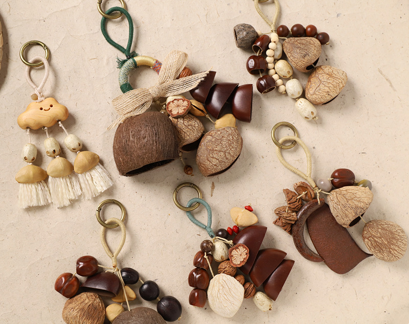天然植物果壳包包挂件手工摇铃音疗挂铃背包挂饰森系疗愈风铃车挂