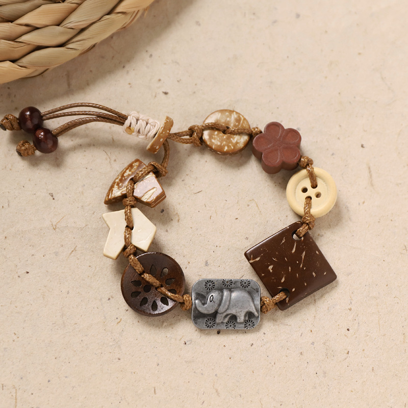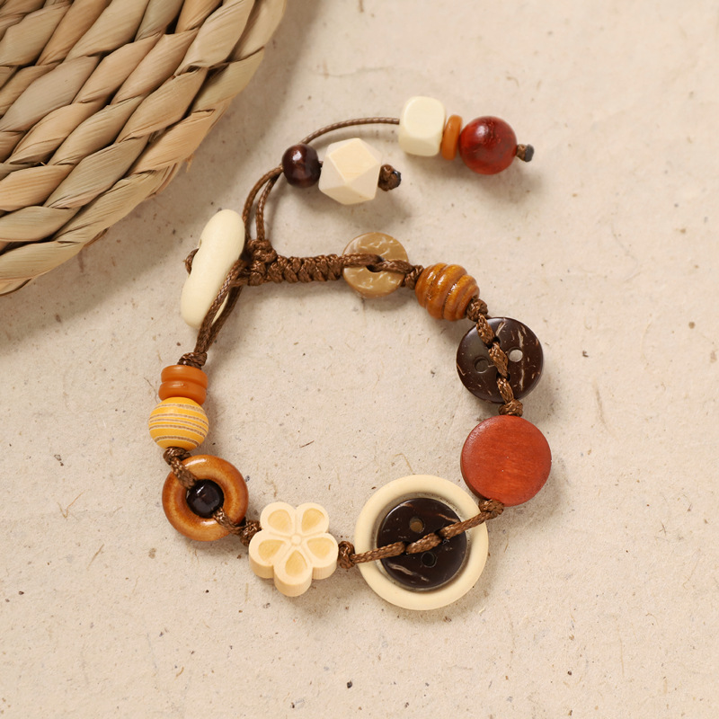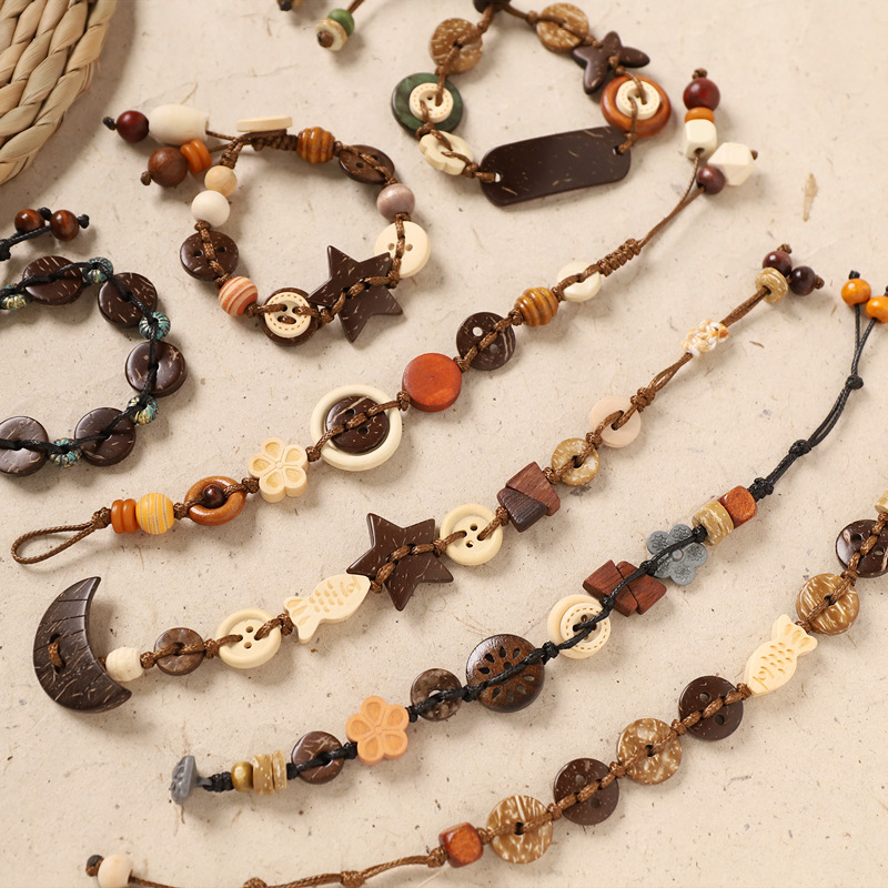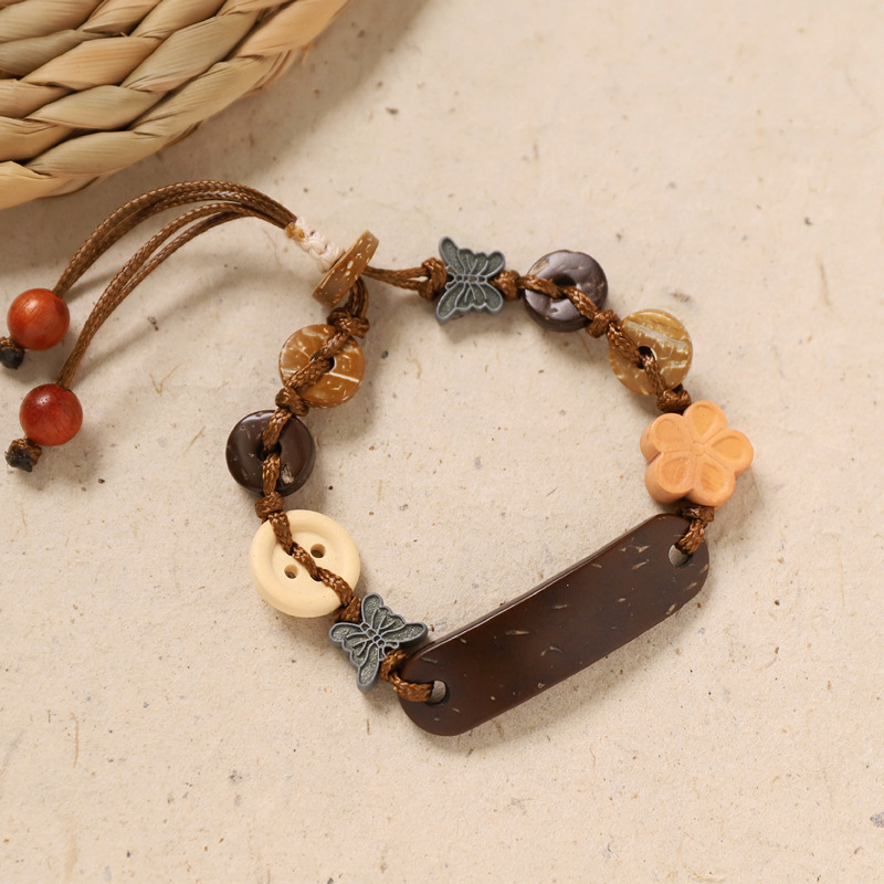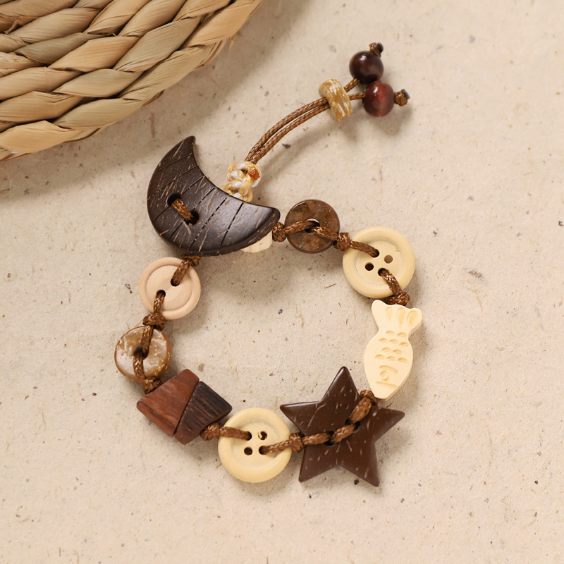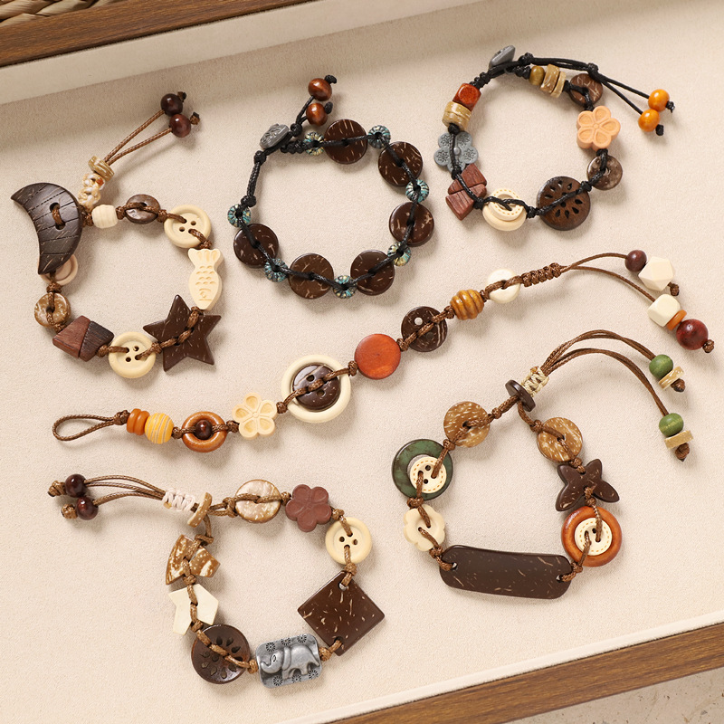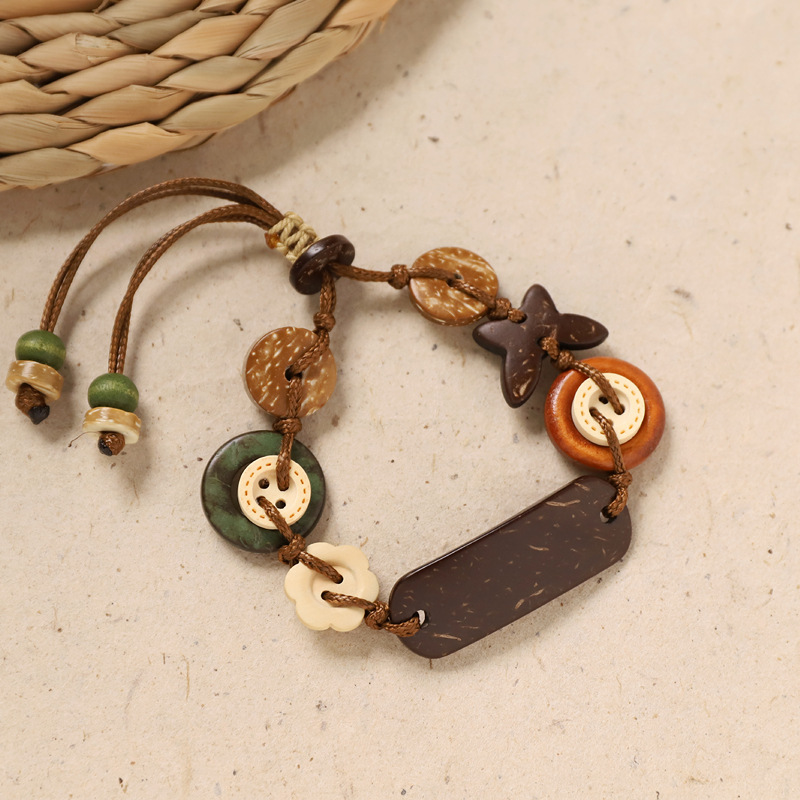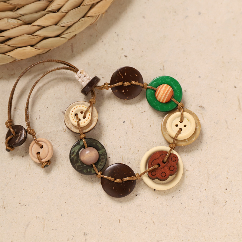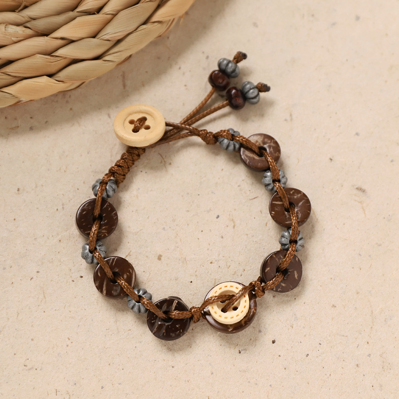 手工编织椰壳纽扣手链小众设计感复古男女手串民族风森系手绳配饰