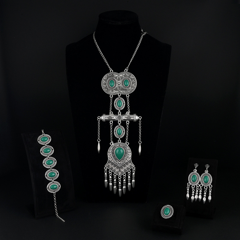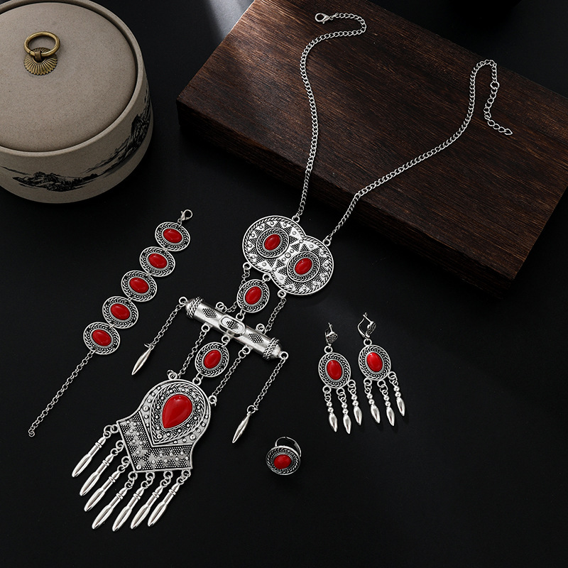 民族风复古哈萨克首饰长款流苏项链女个性异域风戒指手链耳环套装