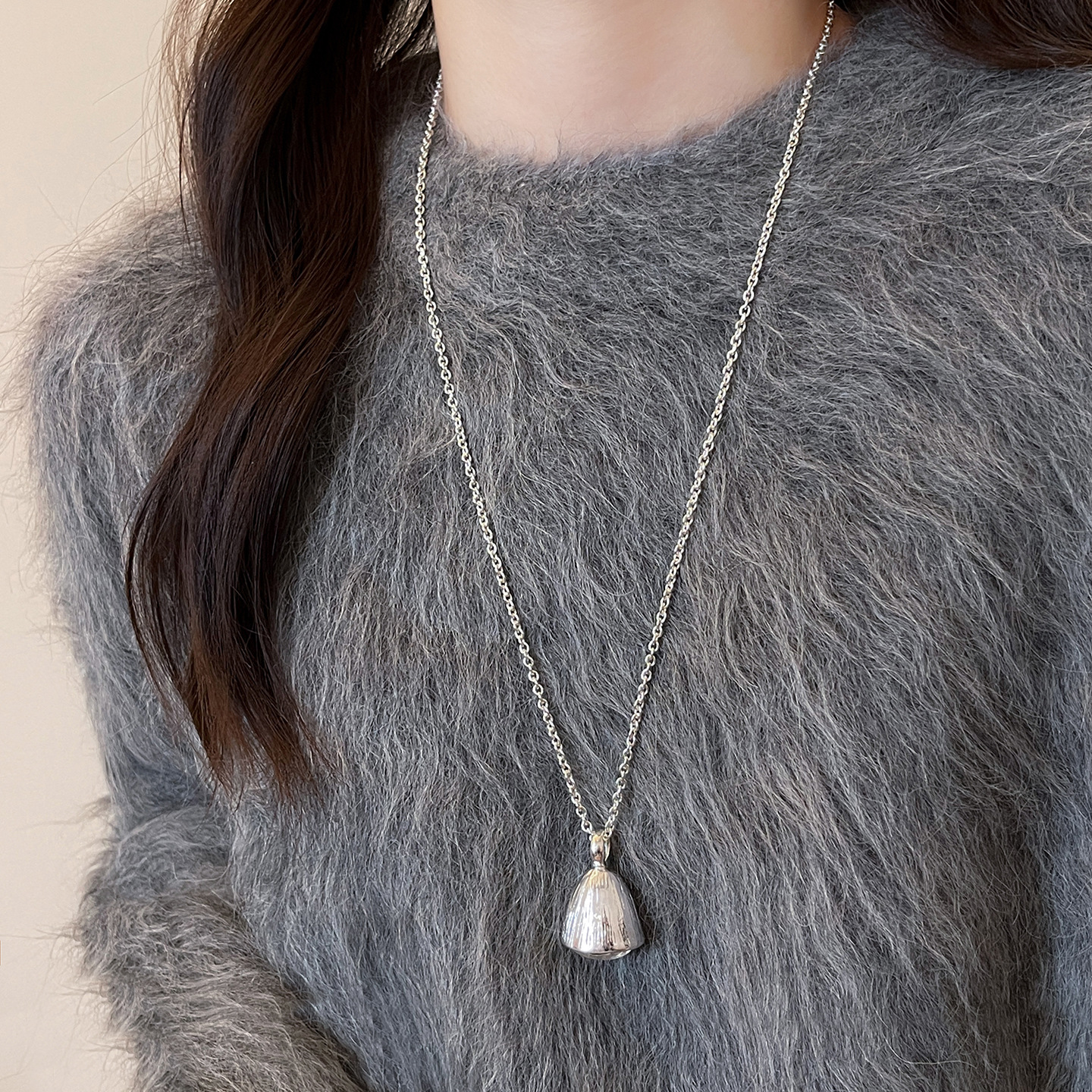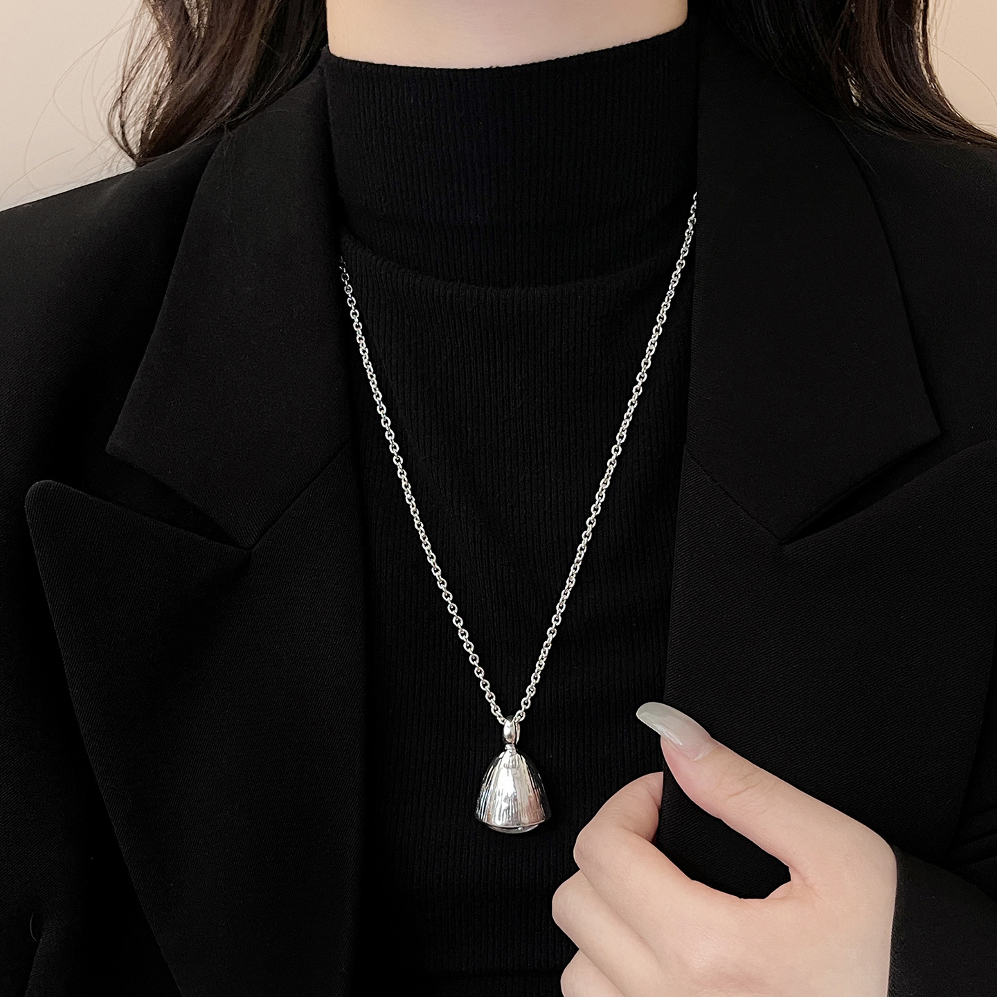 秋冬银色松果吊坠长款项链女简约高档高级感轻奢毛衣链气质配饰品