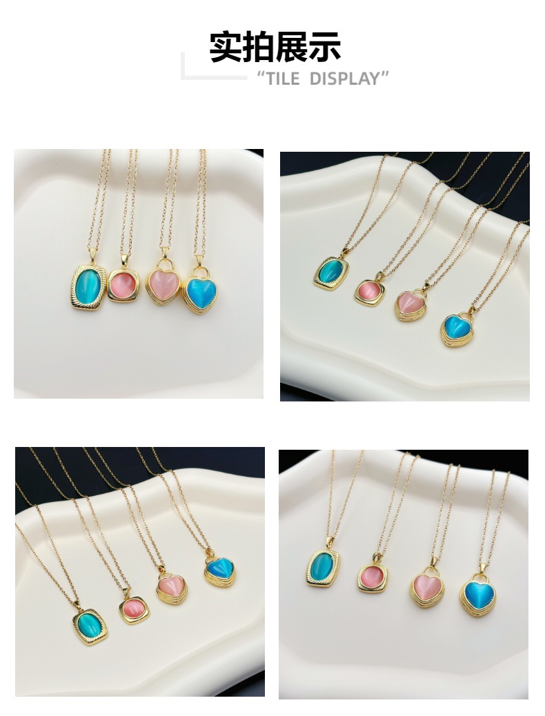 跨境爆款猫眼宝石项链女椭圆爱心吊坠中古风时尚百搭锁骨链批发