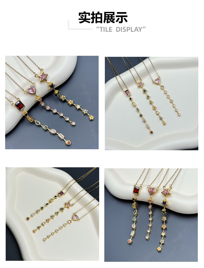 土耳其新款彩钻复古项链跨境爆款星星爱心方糖流苏撞色饰品批发