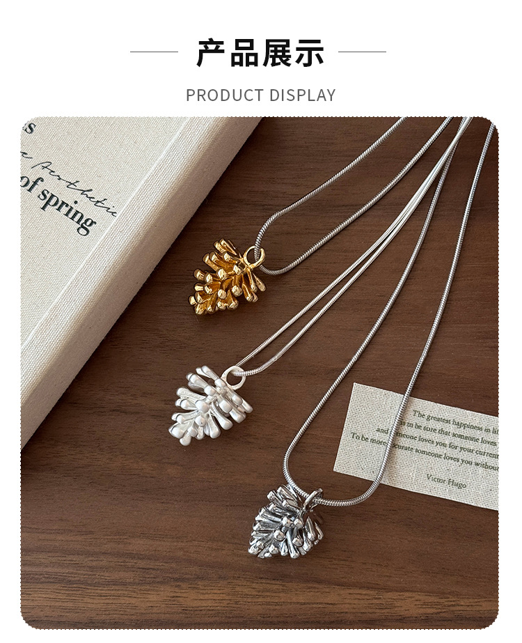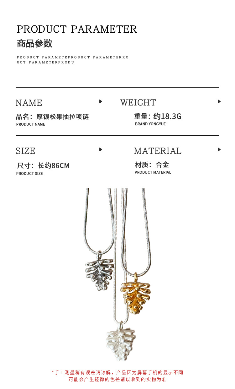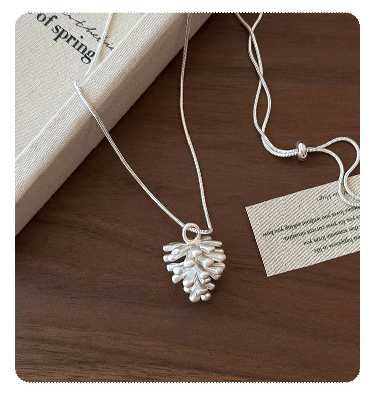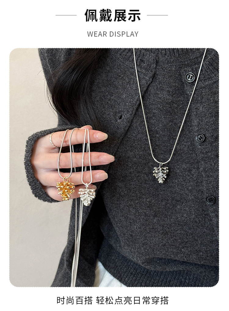 韩系银色松果长款钛钢不掉色项链女高级感轻奢小众毛衣链简约配饰