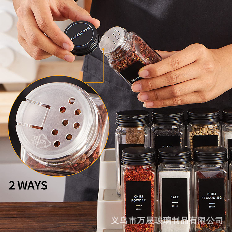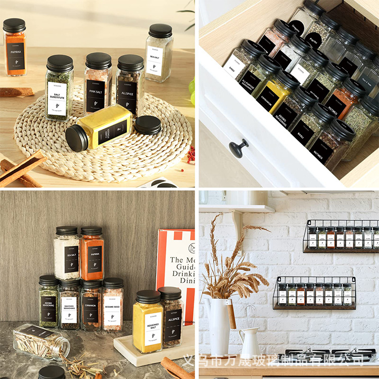 亚马逊套装120ml方形香料瓶套装黑铝盖调料瓶厨房整理玻璃调料罐