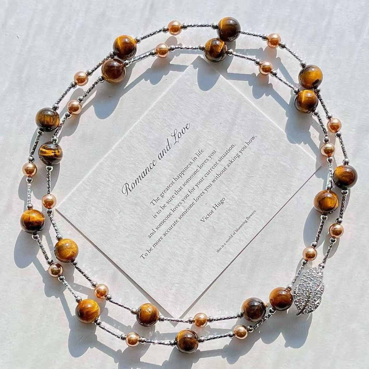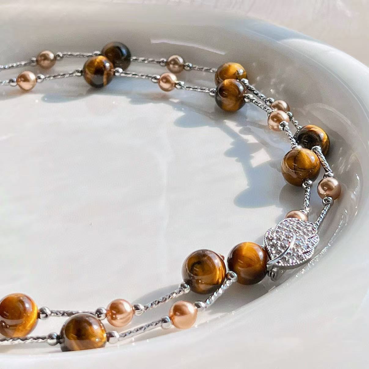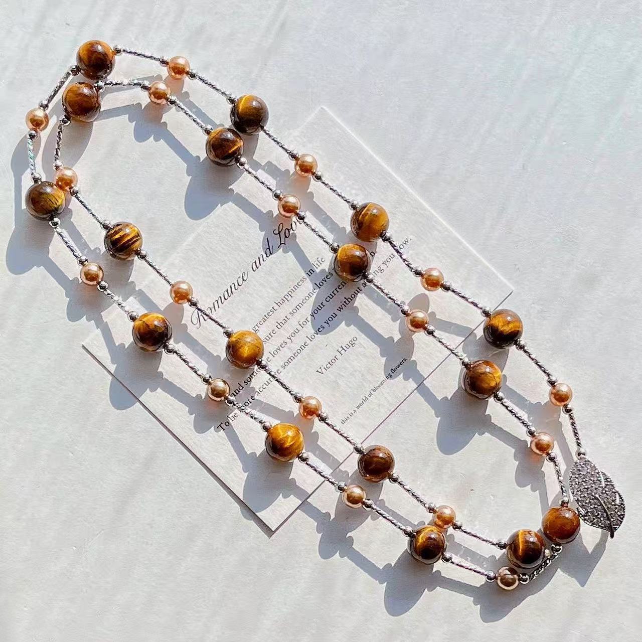 保真美拉德天然精品虎眼石仿大溪地珍珠多种戴法毛衣链锁骨链项链