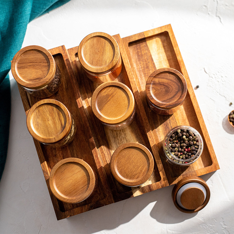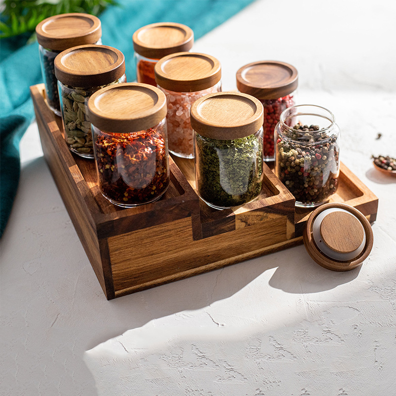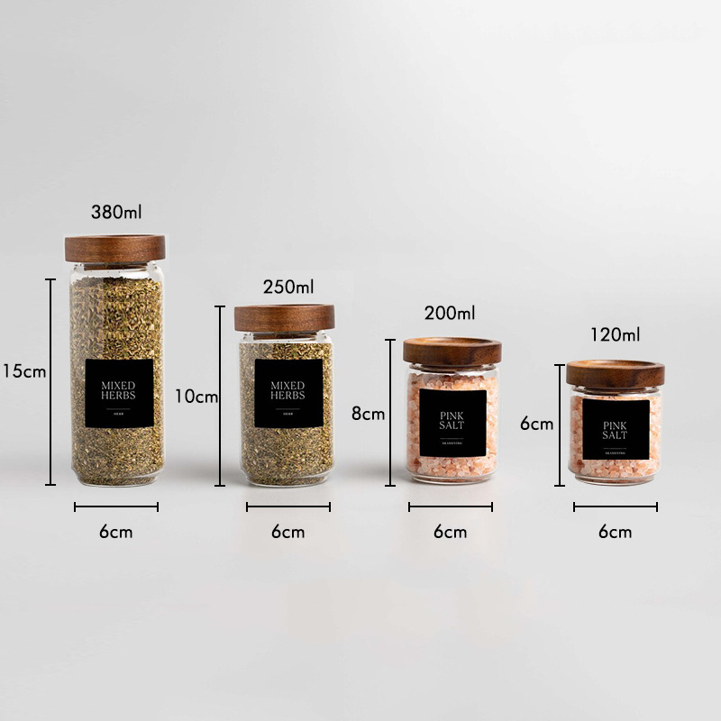 跨境玻璃储物罐相思木盖储物罐子家用厨房调料孜然储存收纳瓶批发