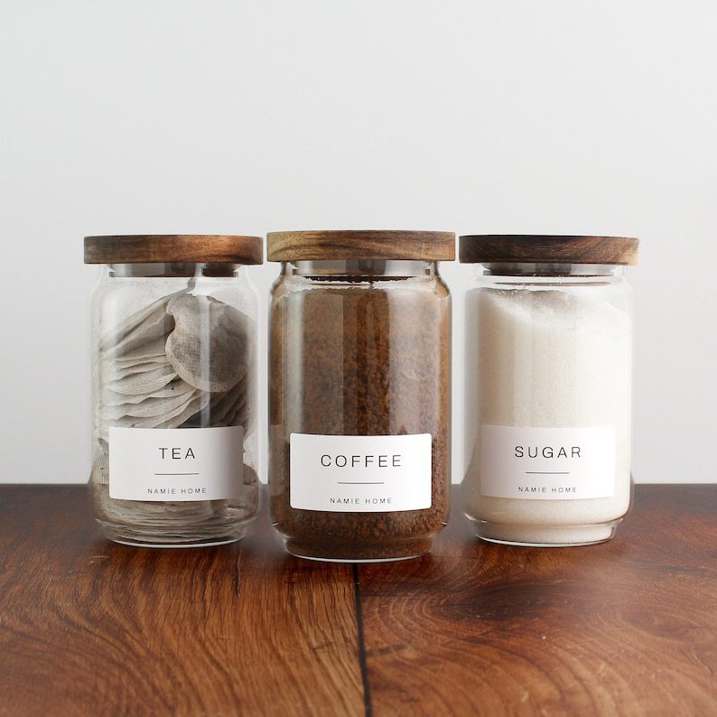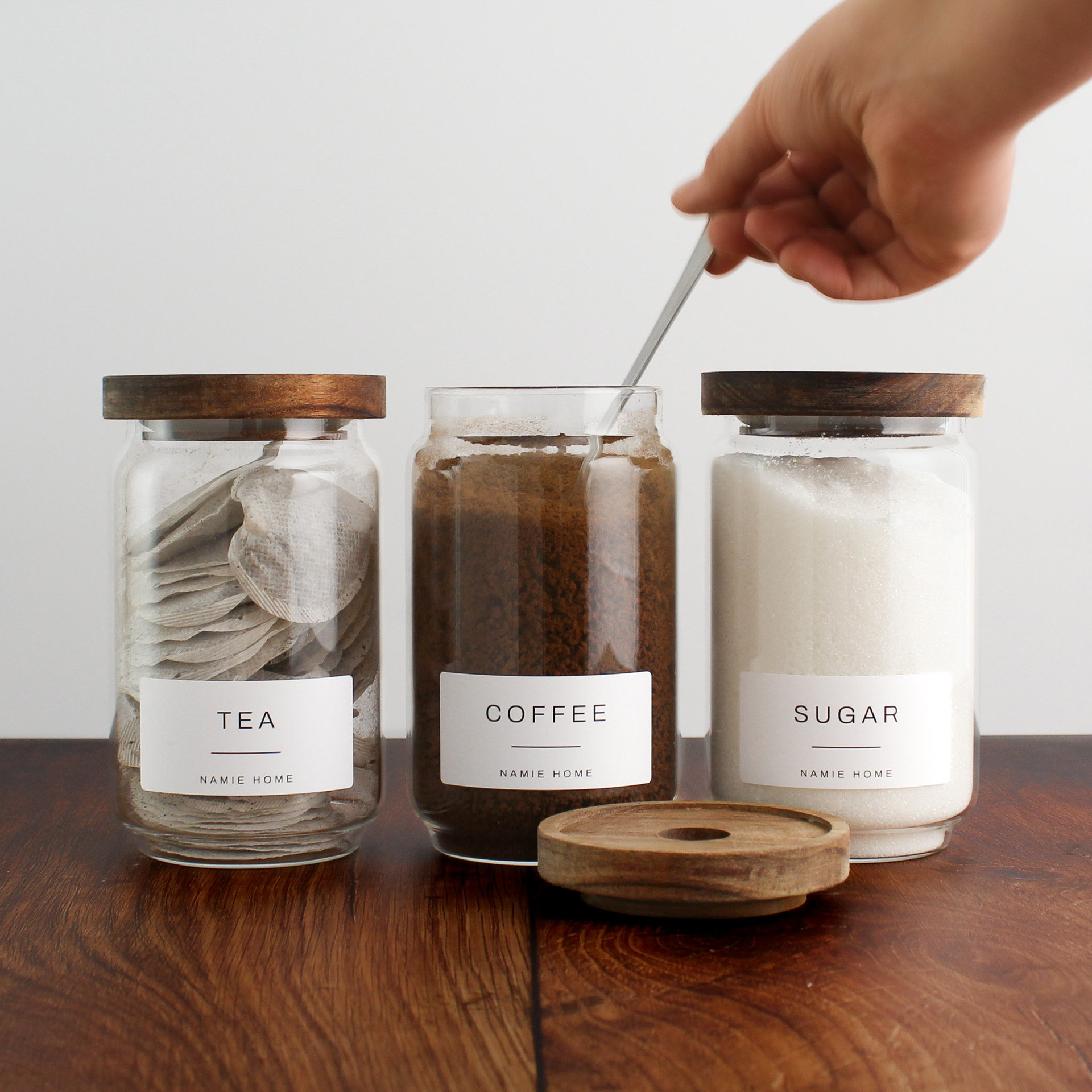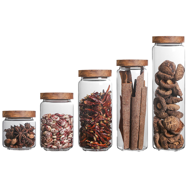 带孔相思木盖透明玻璃罐厨房储物收纳罐茶叶咖啡豆五谷杂粮密封罐