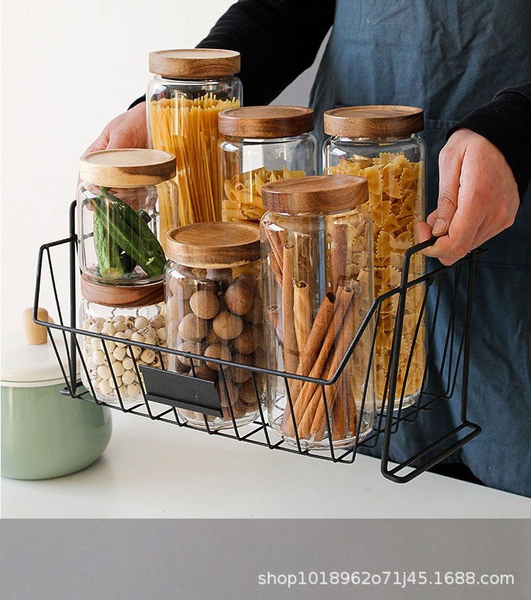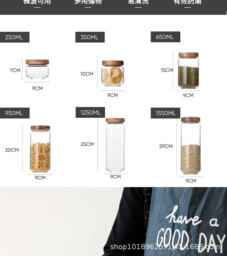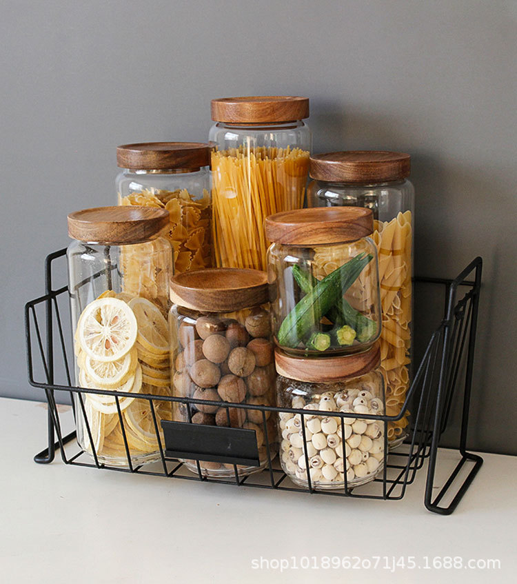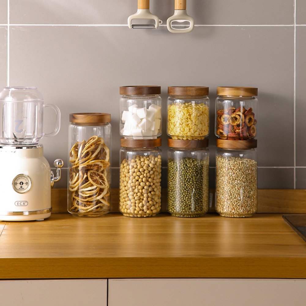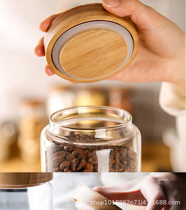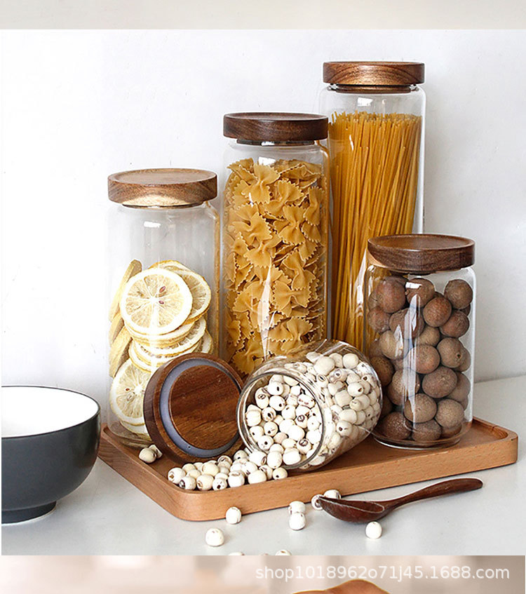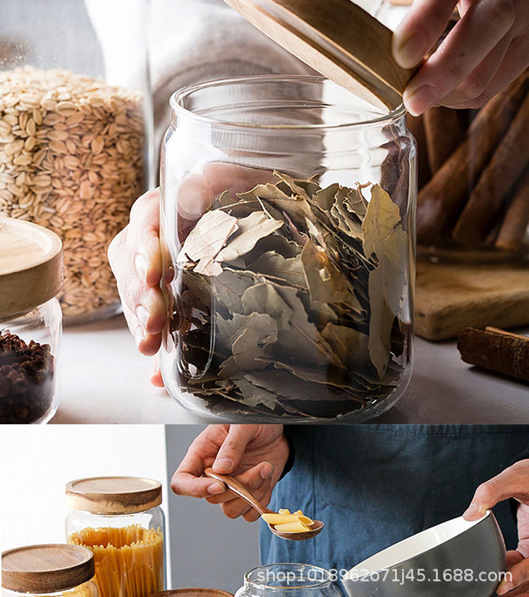 亚马逊食品级玻璃密封罐带盖子厨房收纳罐家用相思木盖透明方形罐