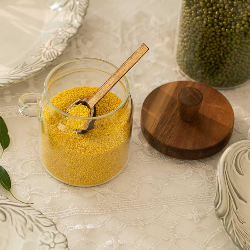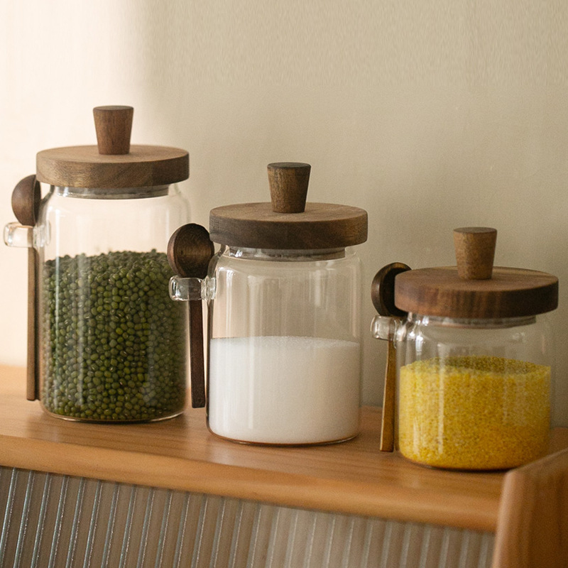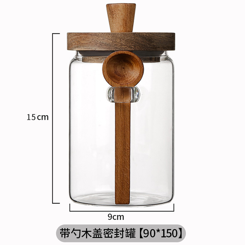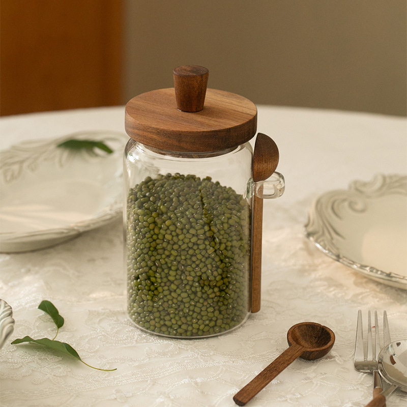 相思木盖带勺玻璃罐茶叶密封罐绿豆储物罐厨房五谷杂粮储存罐批发