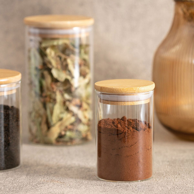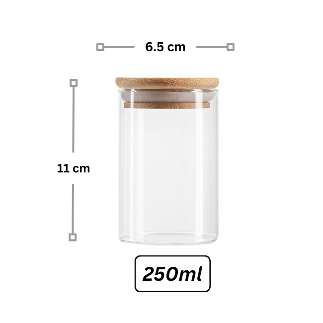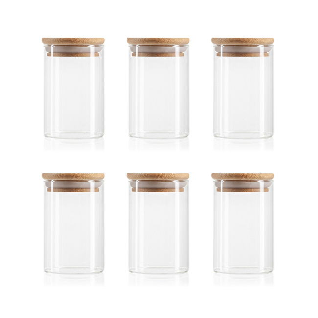 跨境6件套250ml透明圆形玻璃罐厨房储物罐调料收纳罐带竹盖密封罐