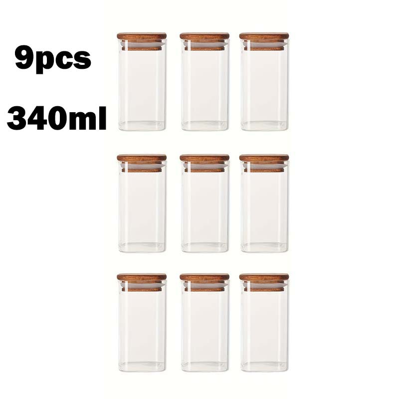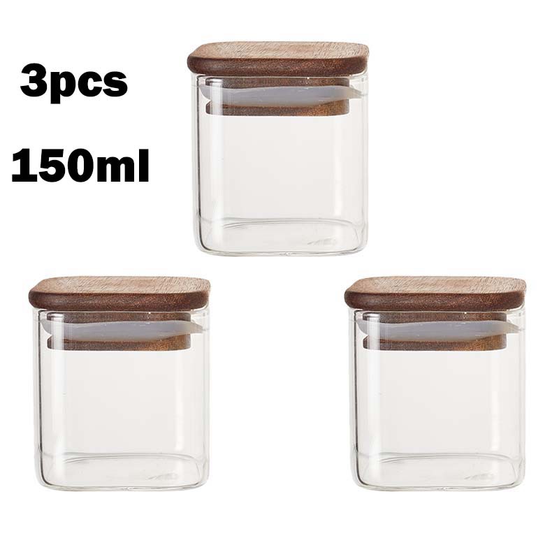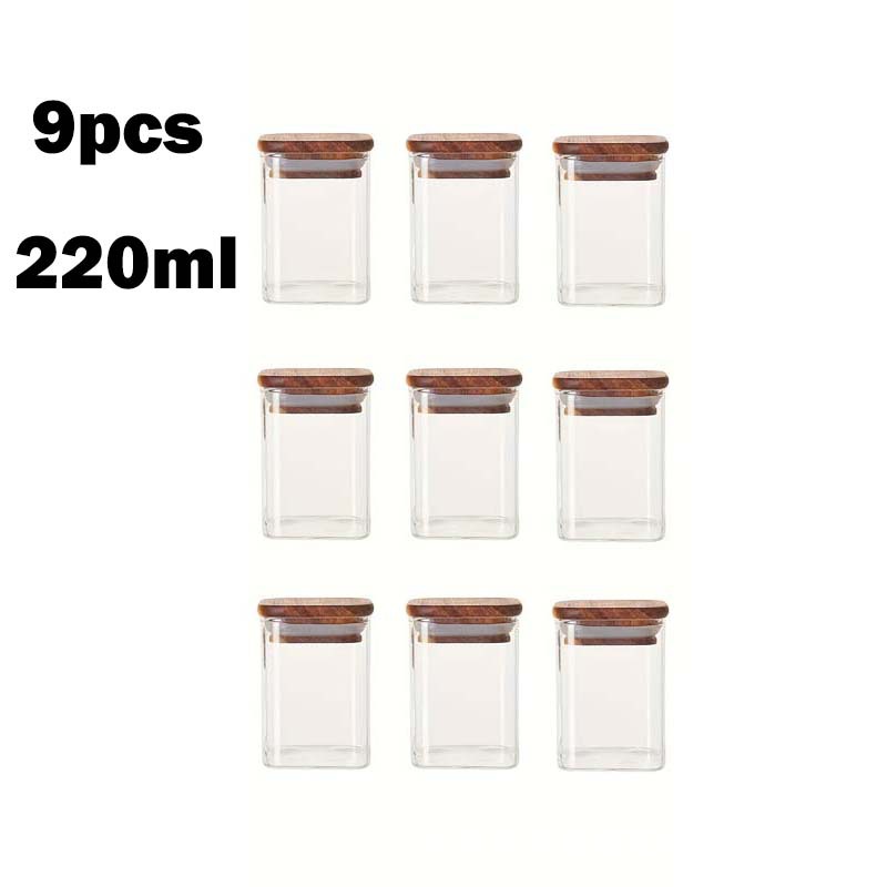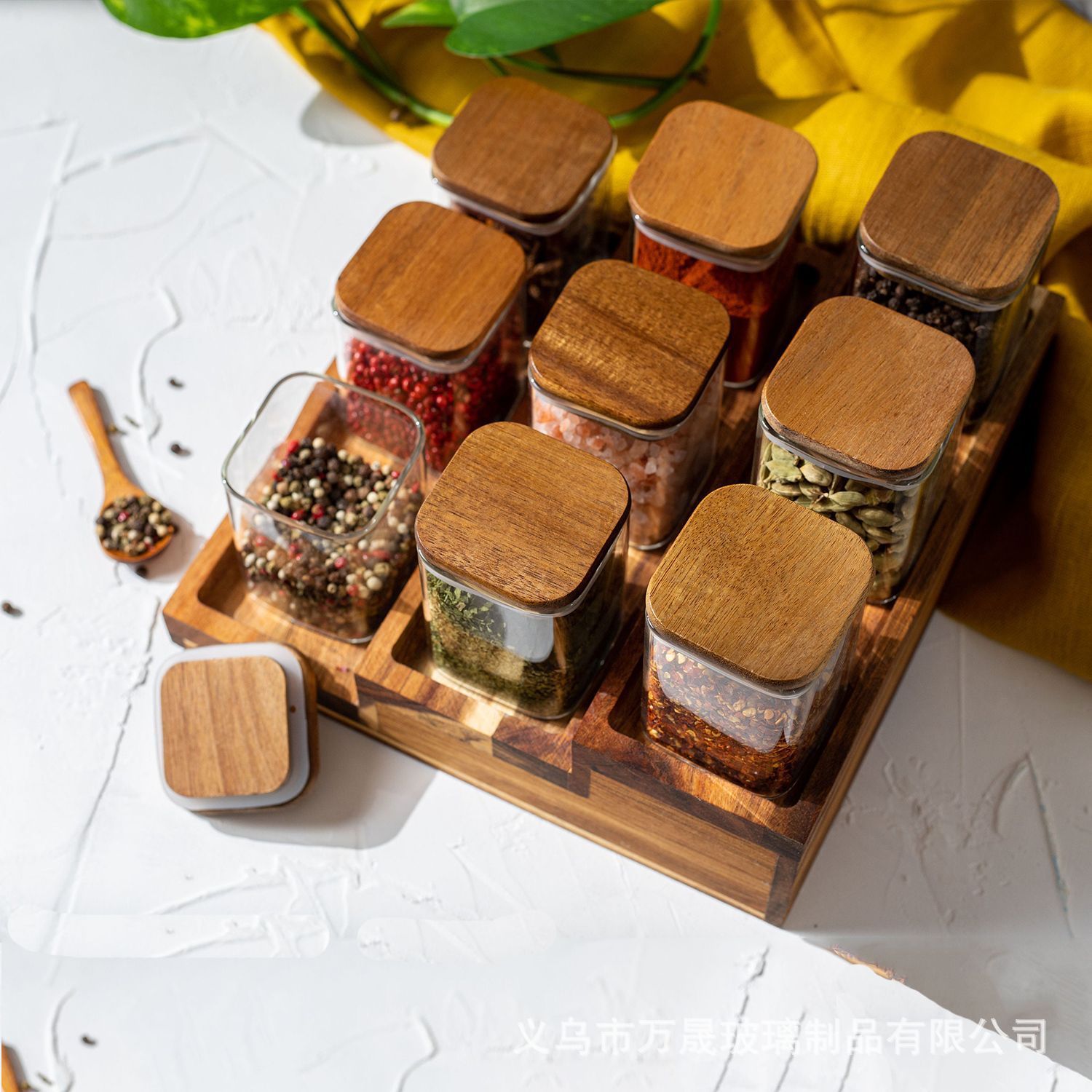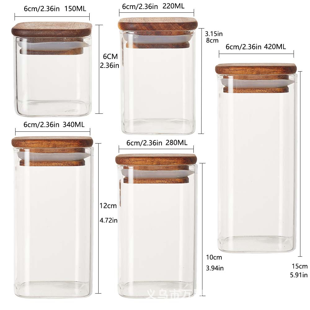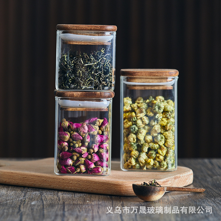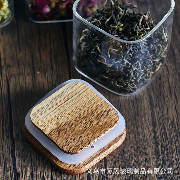 小号相思木盖方形玻璃密封罐3/9套装相思木底座储物收纳茶叶玻璃