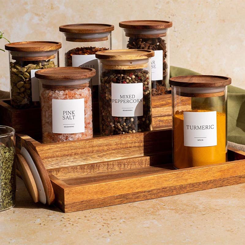 轻奢相思木盖玻璃密封罐食品级调料罐厨房收纳调料胡椒孜然储物罐