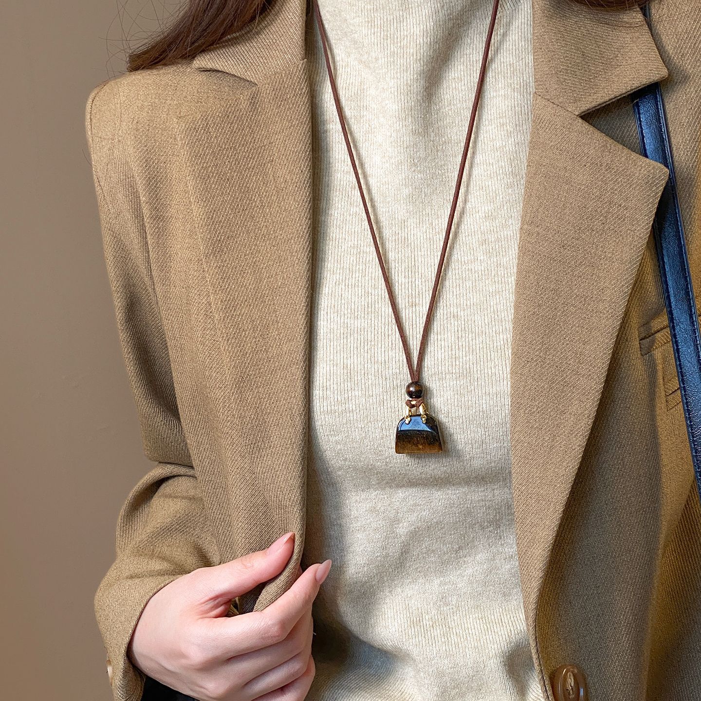 新款美拉德咖色吊坠长款项链女复古轻奢高级感毛衣链小众设计配饰