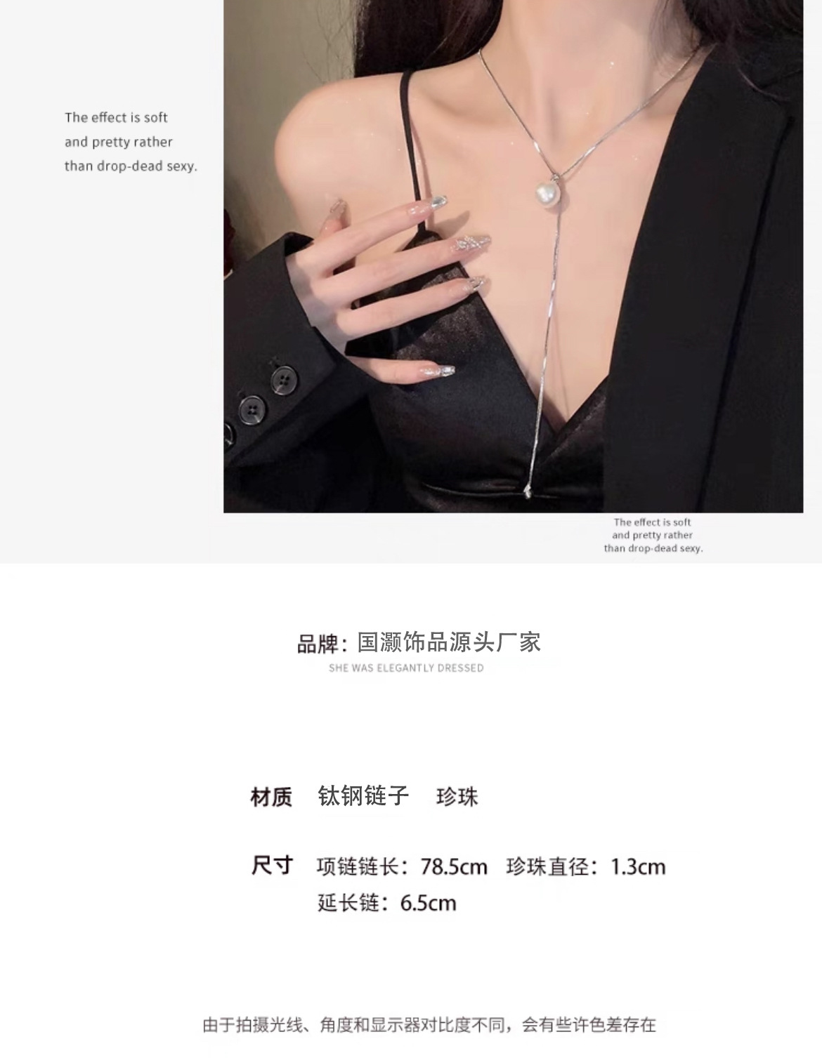 钛钢抽拉可调节珍珠项链女百搭简约长款毛衣链小众设计ins冷淡风