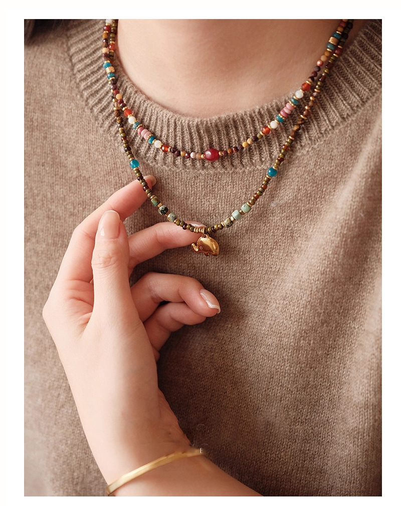 小象吊坠天然石串珠复古项链配饰女秋冬毛衣链轻奢高级感小众饰品