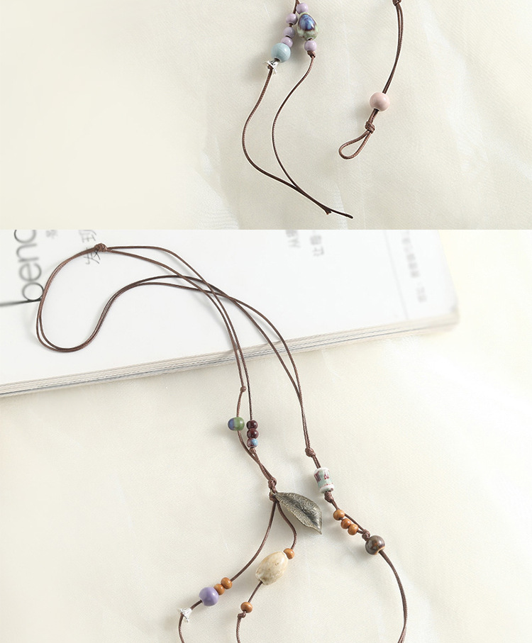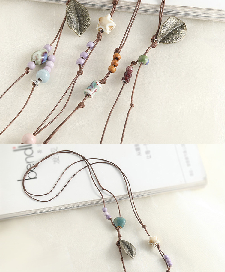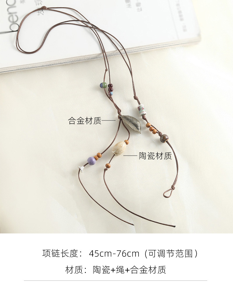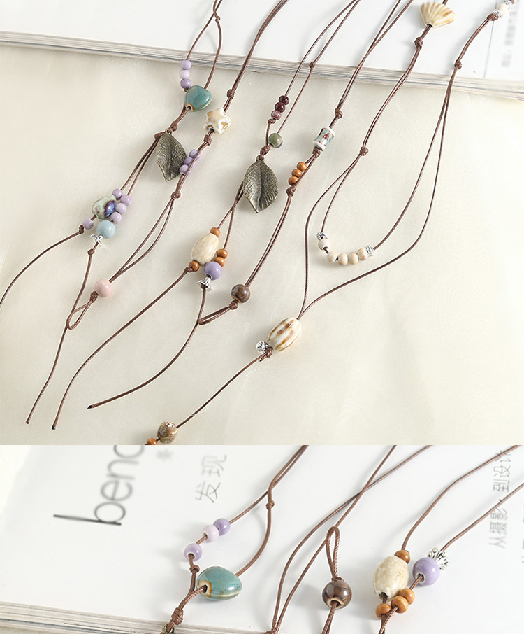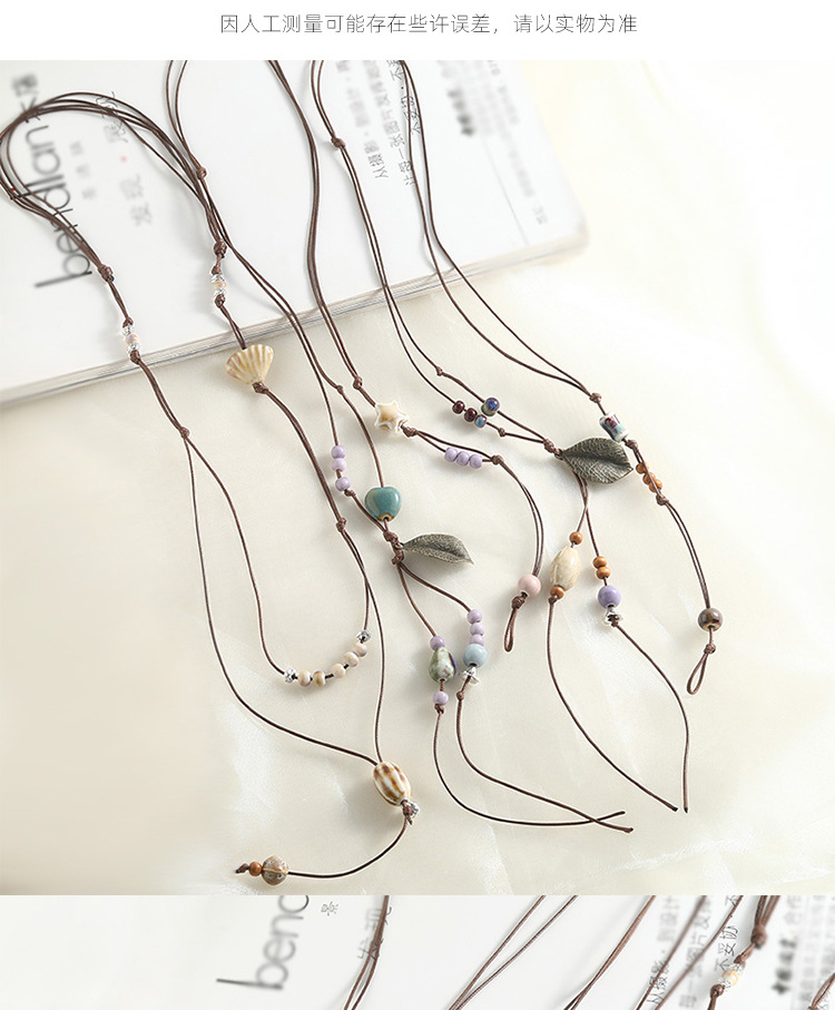新款个性陶瓷项链配饰女多层叠搭毛衣链腰链手工编织挂绳小众百搭
