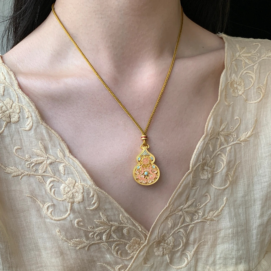 「海棠葫芦」国风新中式编绳珐琅毛衣链长款项链女吊坠配饰士饰品