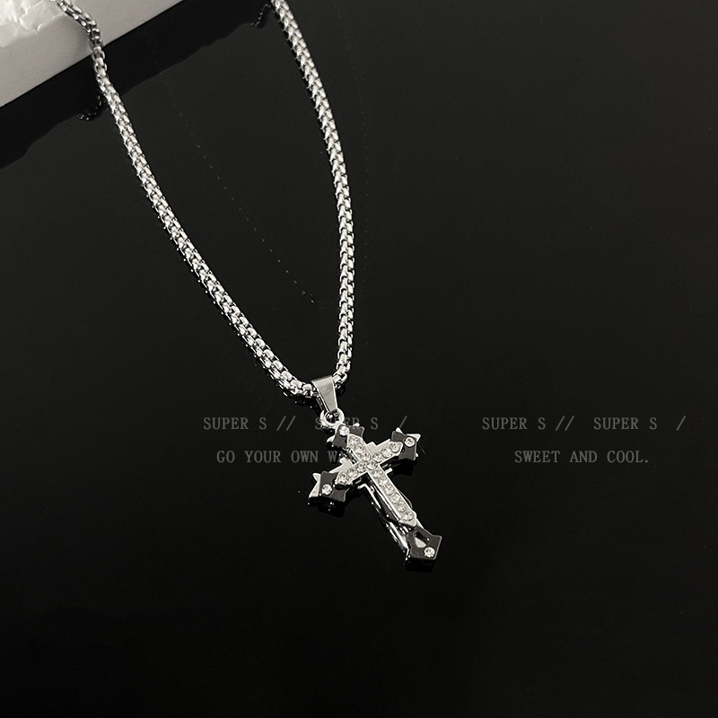 长款钛钢不掉色十字架项链ins嘻哈男潮毛衣链小众设计感卫衣链女