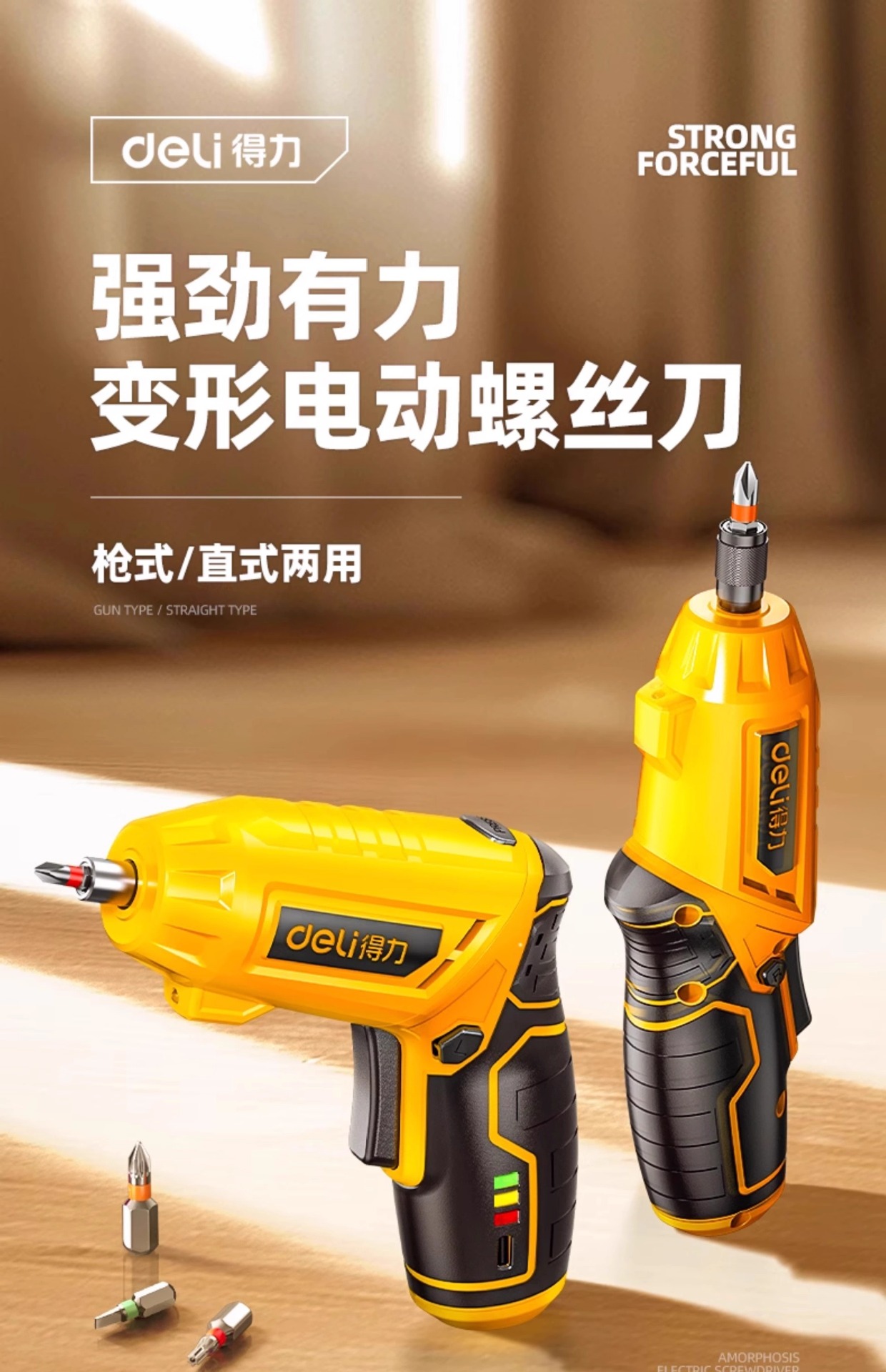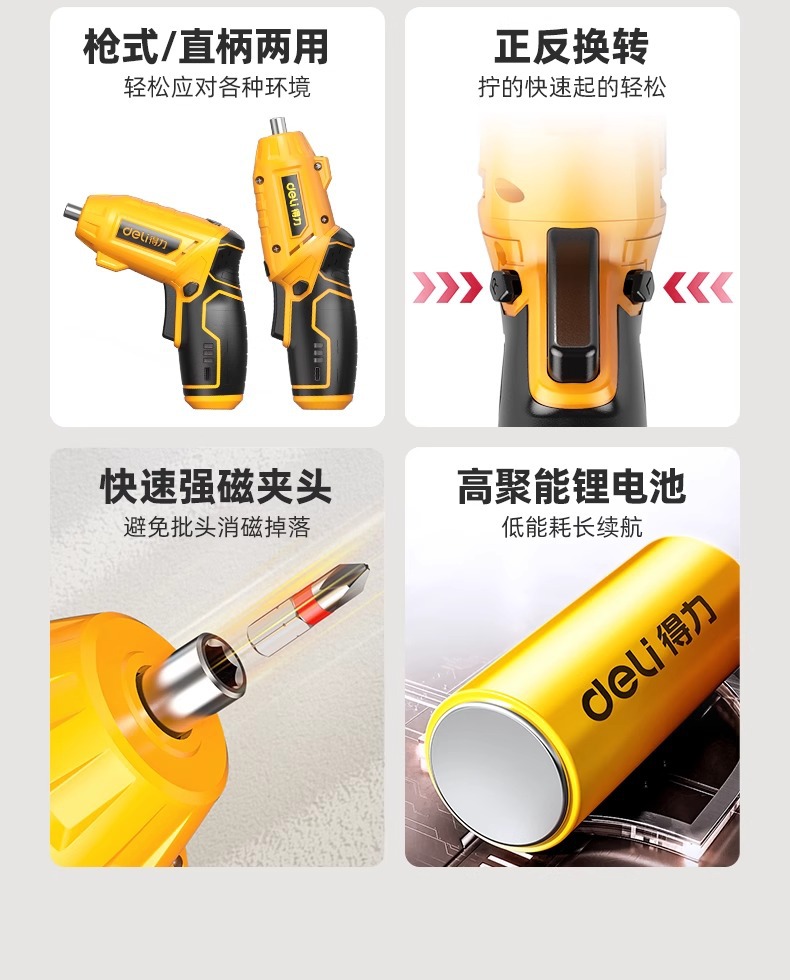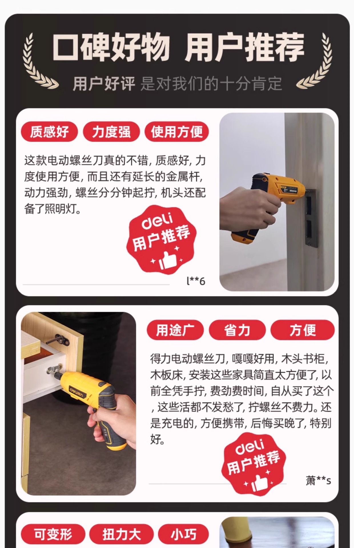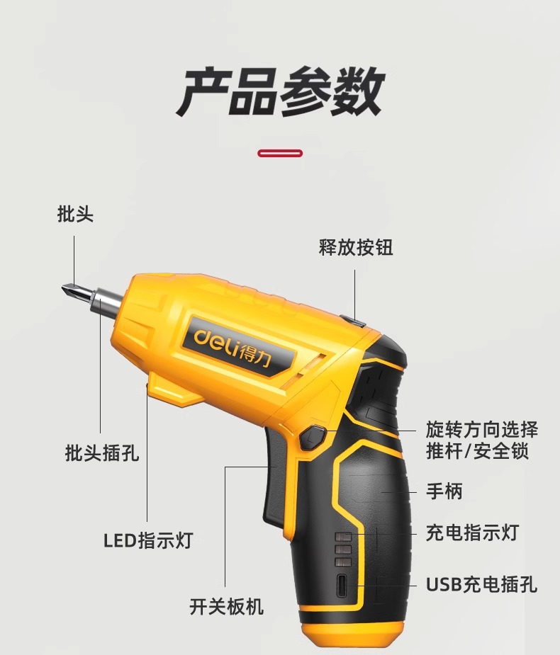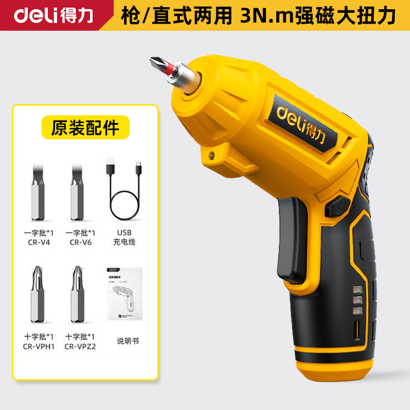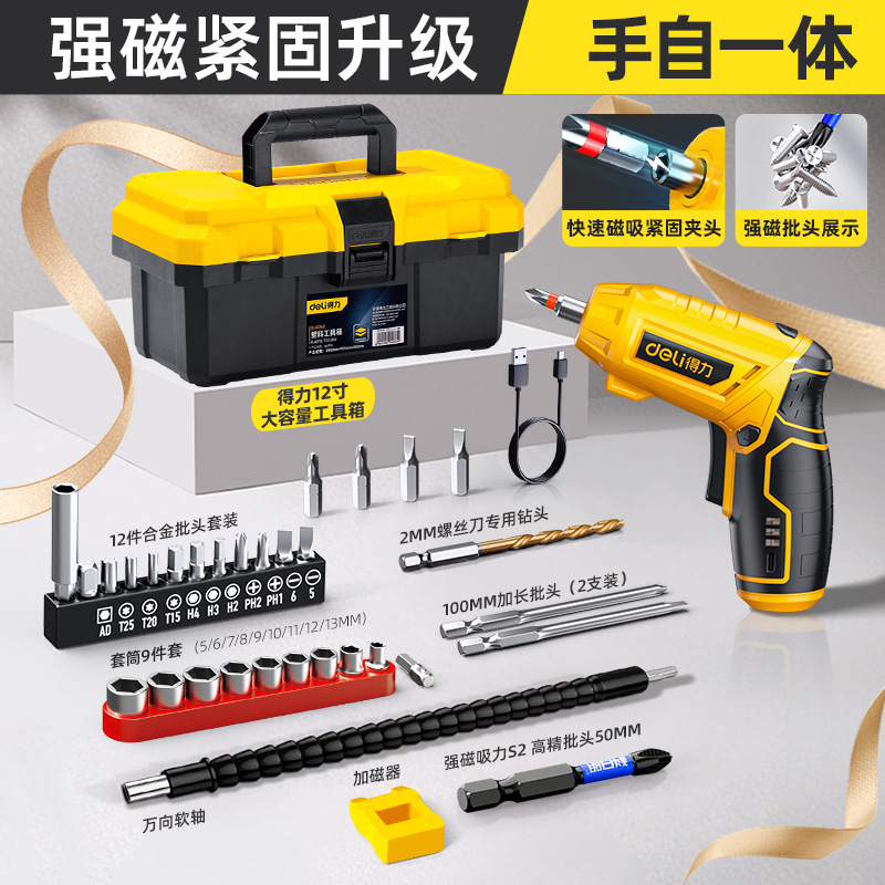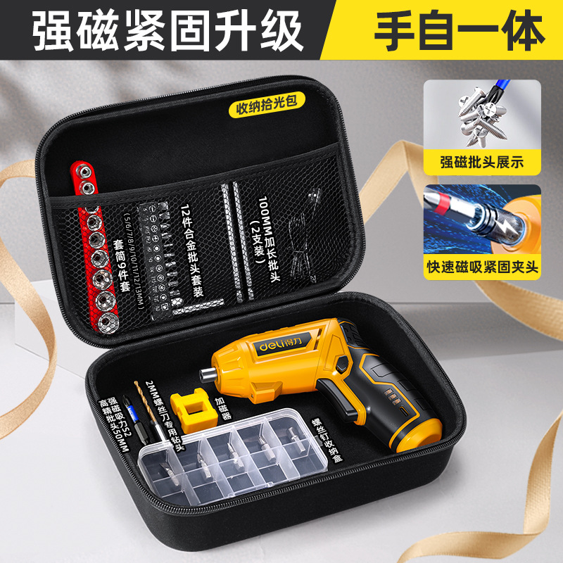 得力电动螺丝刀套装起子机电批锂电自动打钻迷你枪小型充电式家用