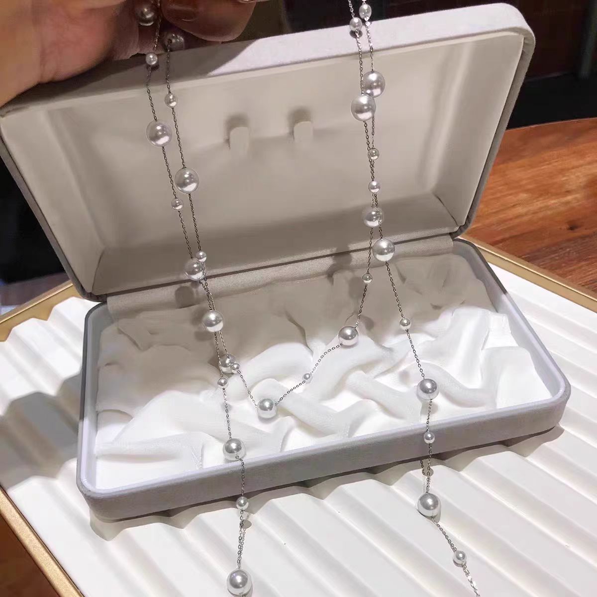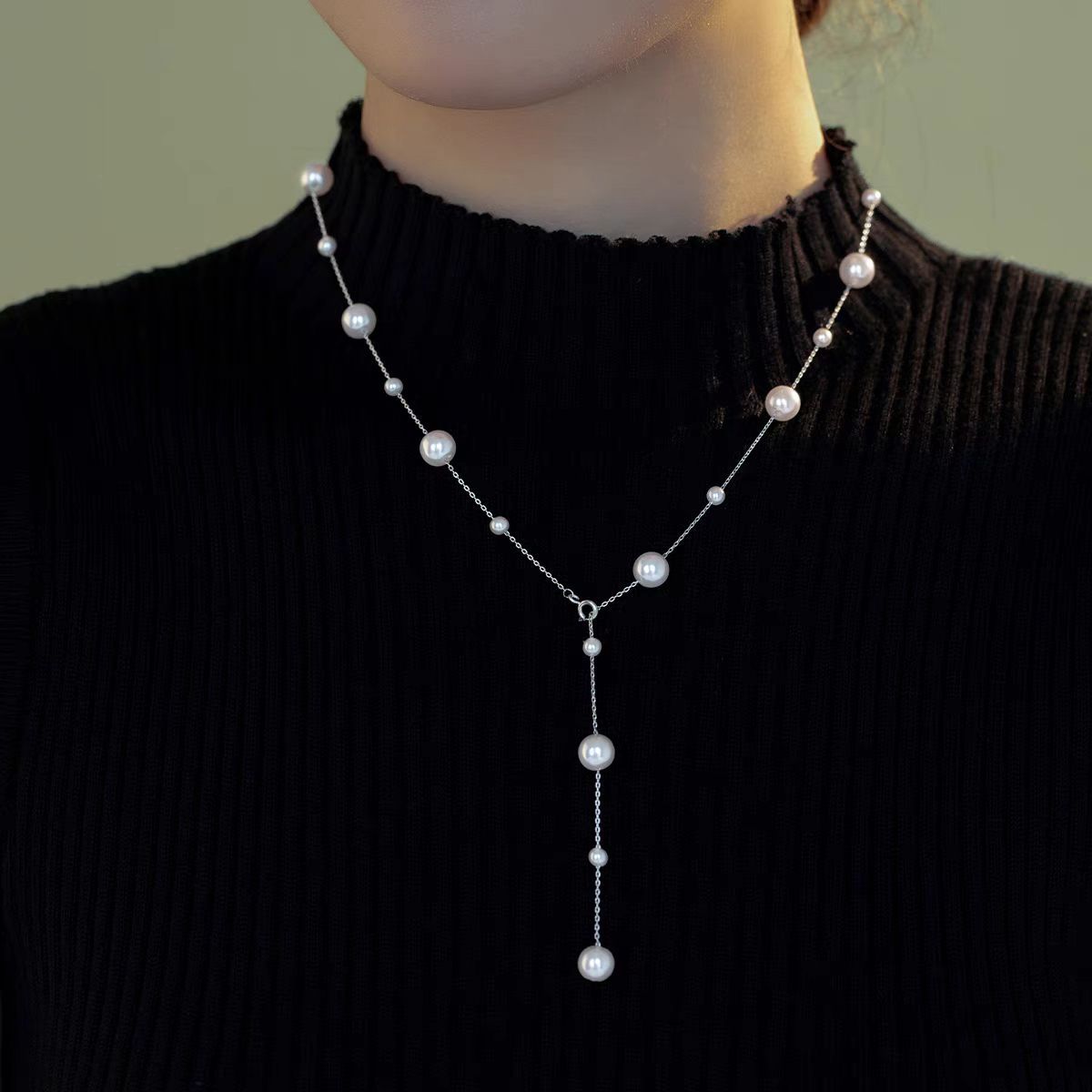 长款满天星仿施家珍珠项链女款2025新款潮毛衣链轻奢高级感锁骨链