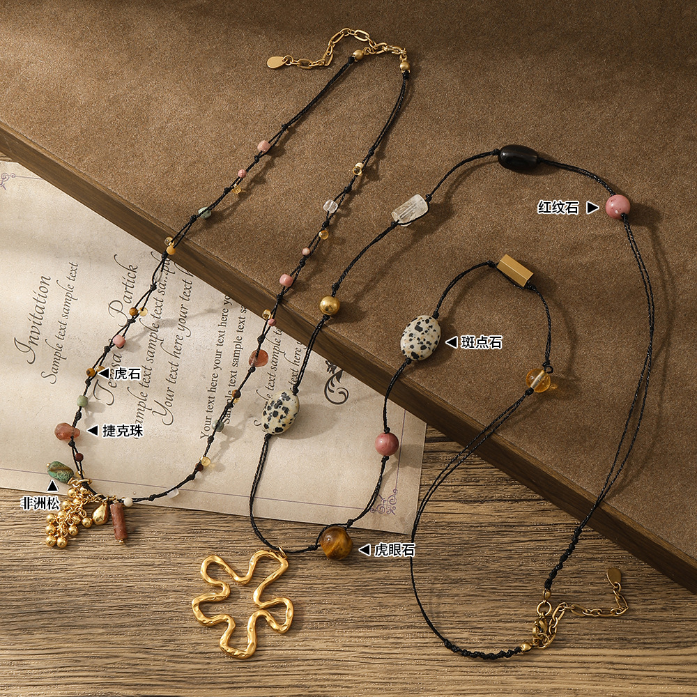 2025秋款复古手工编织绳串珠项链女小众设计民族风毛衣链叠戴配饰
