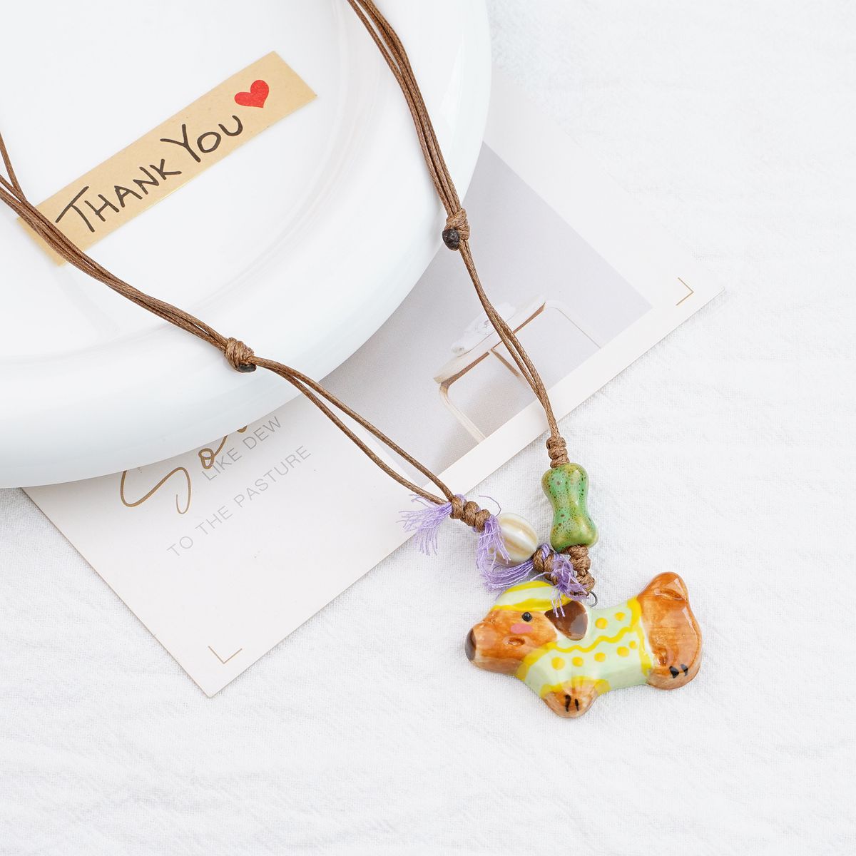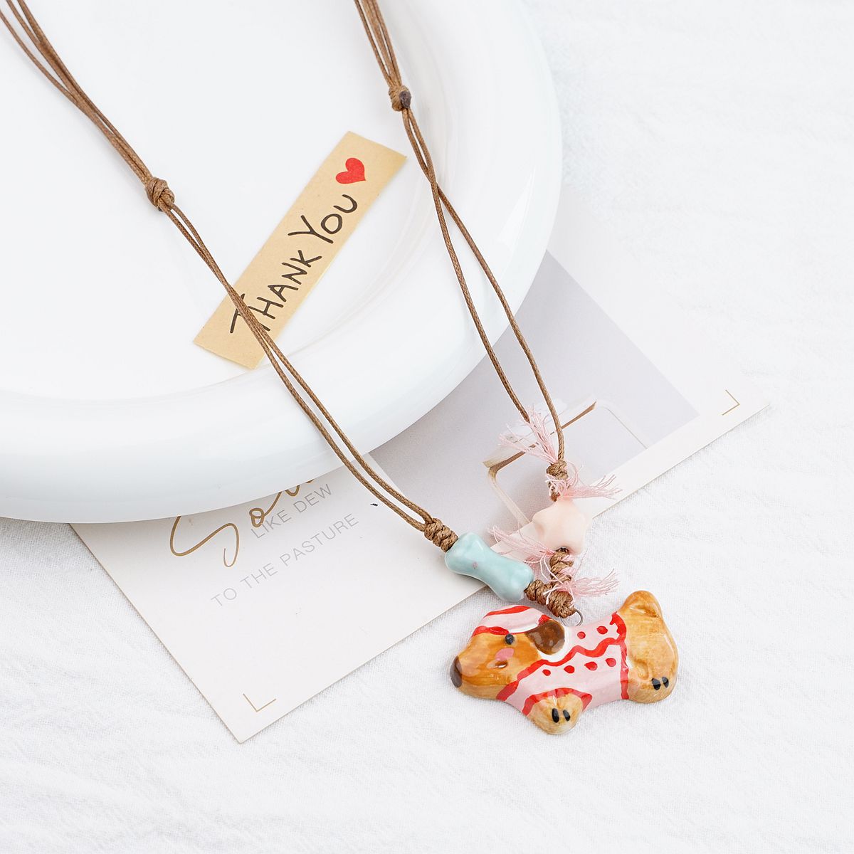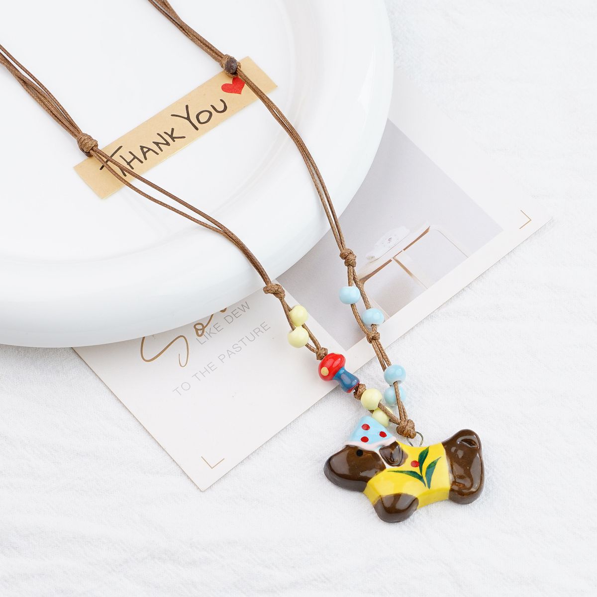 景德镇多巴胺彩色项链女童趣小狗可爱多巴胺长款编织卫衣毛衣链