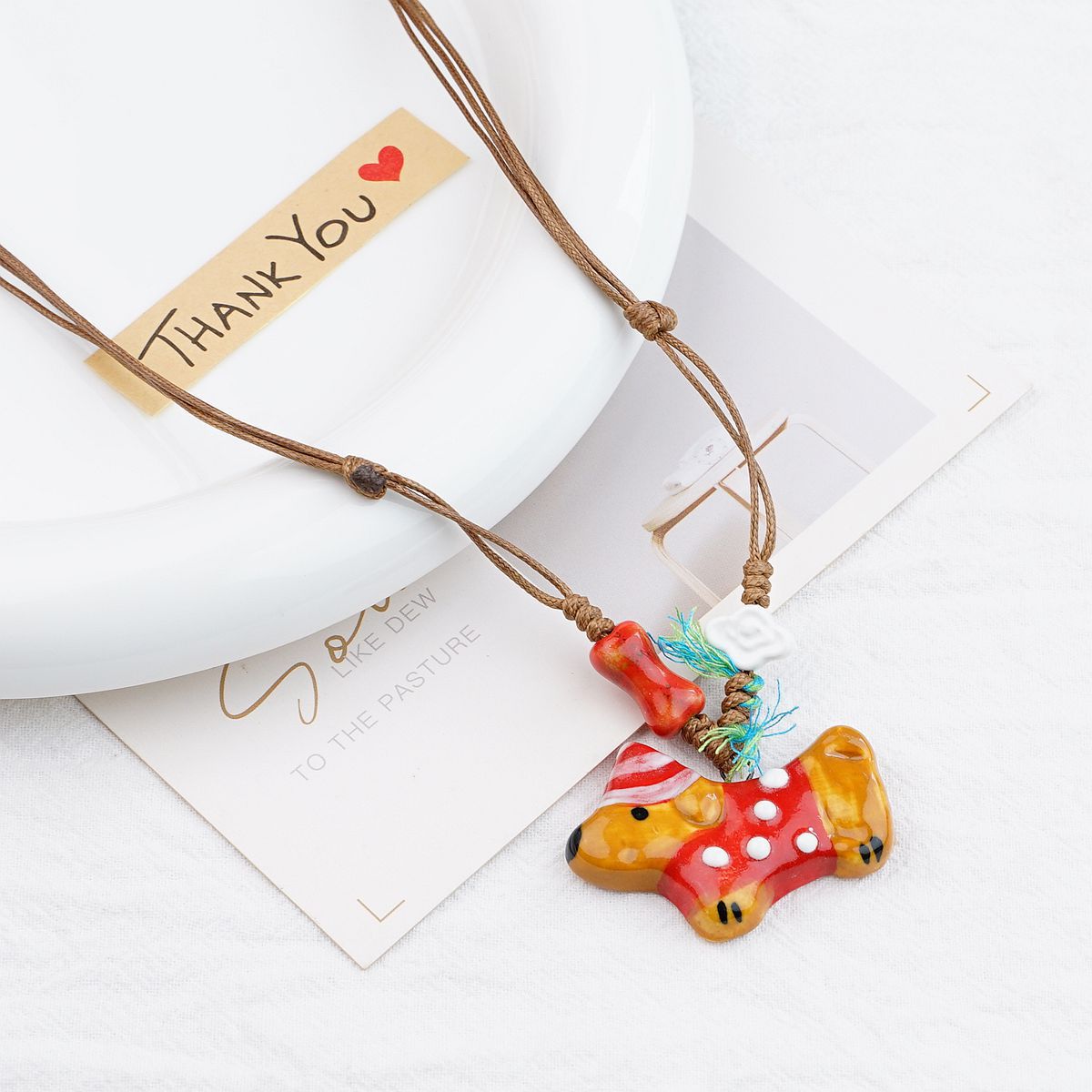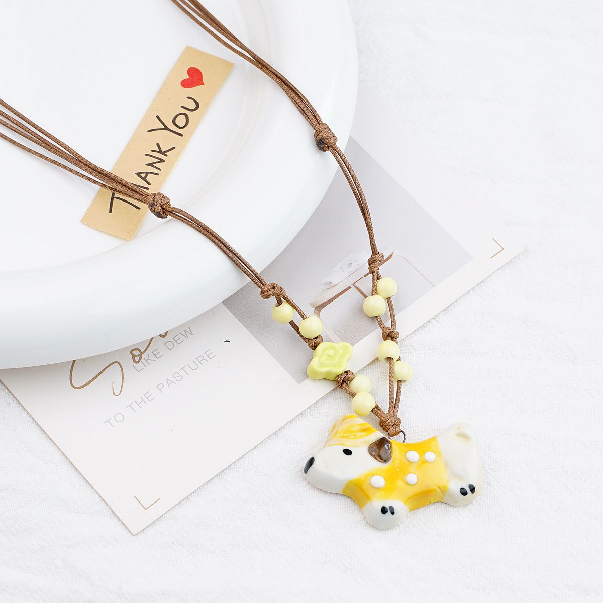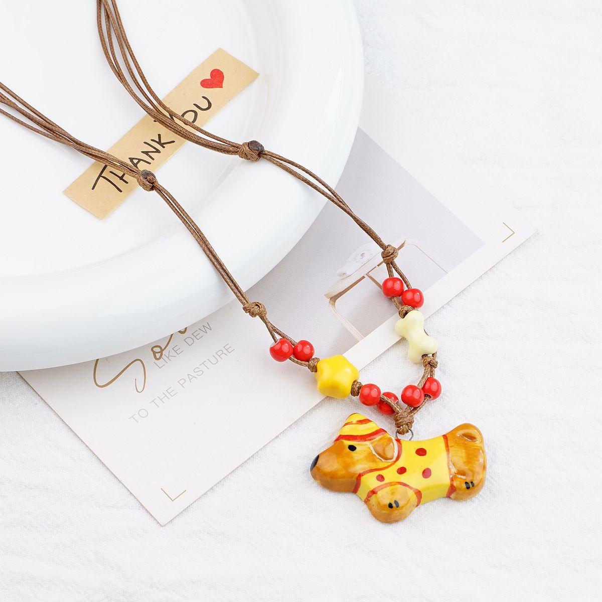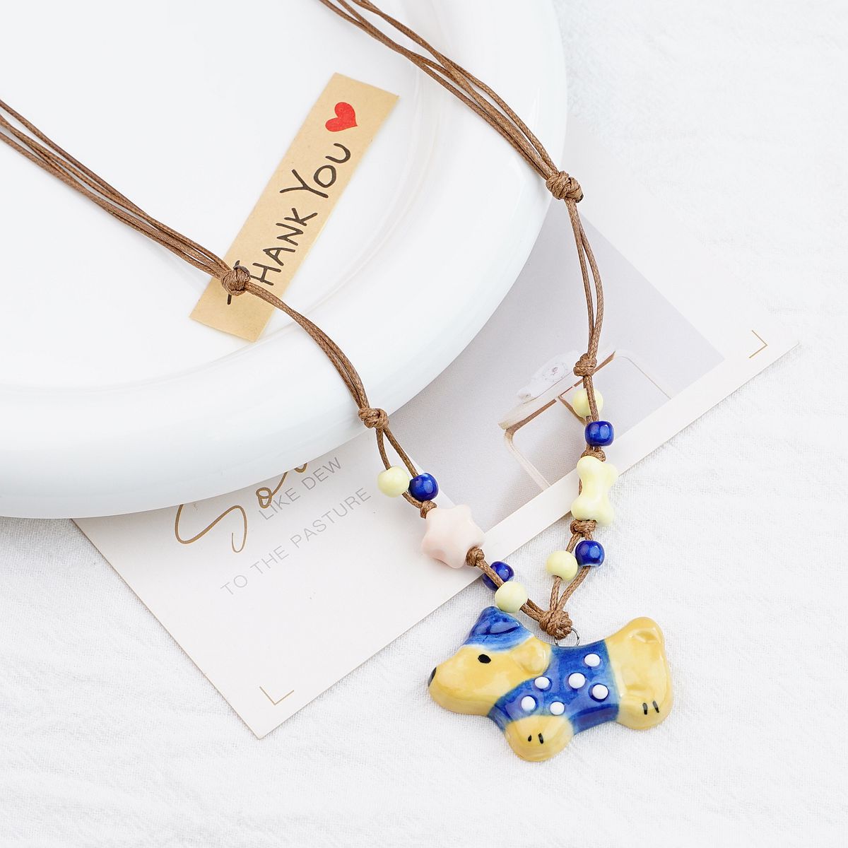 景德镇多巴胺彩色项链女童趣小狗可爱多巴胺长款编织卫衣毛衣链