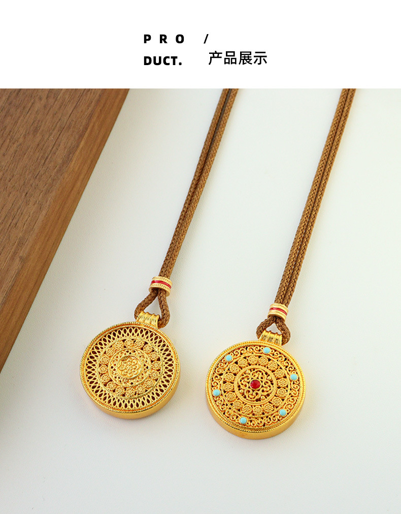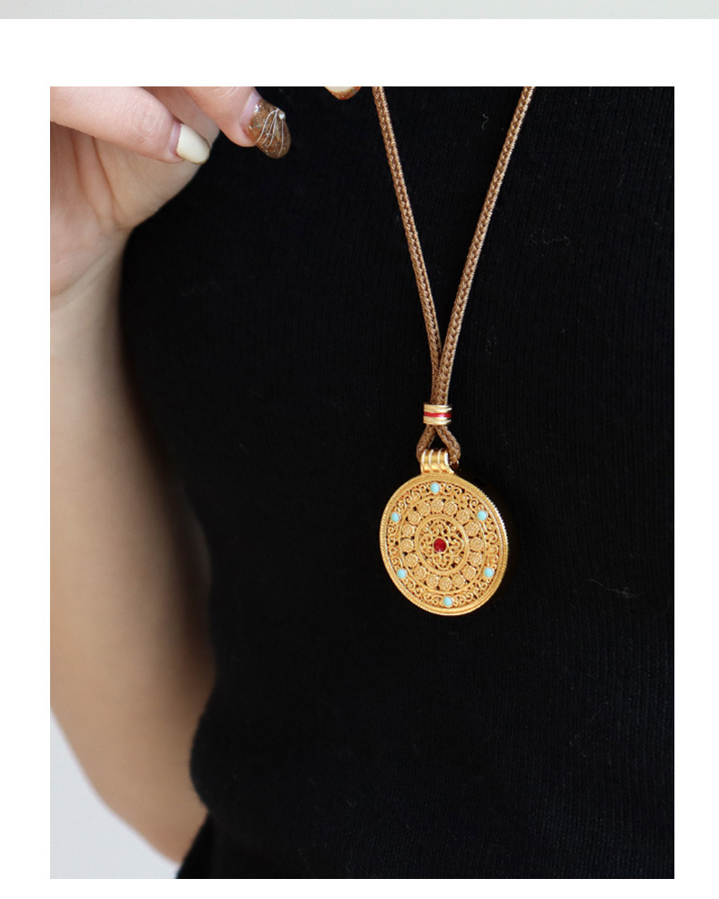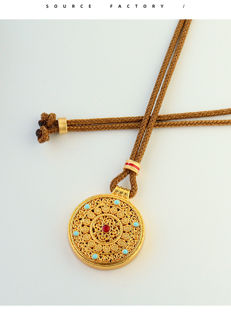 韦雪同款新中式古法沙金吉祥八宝罗盘吊坠项链气质百搭长款毛衣链