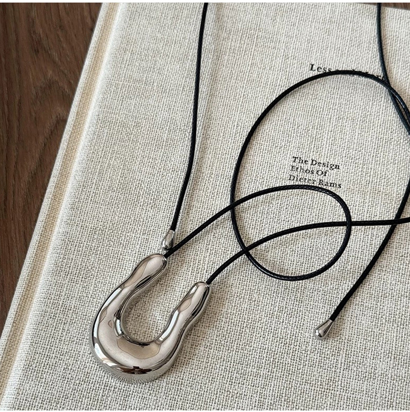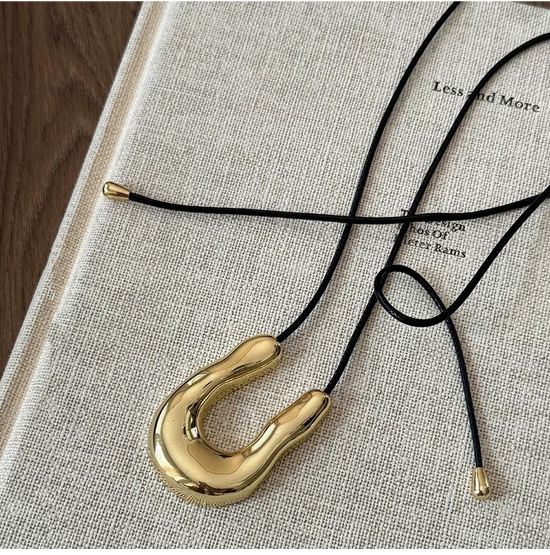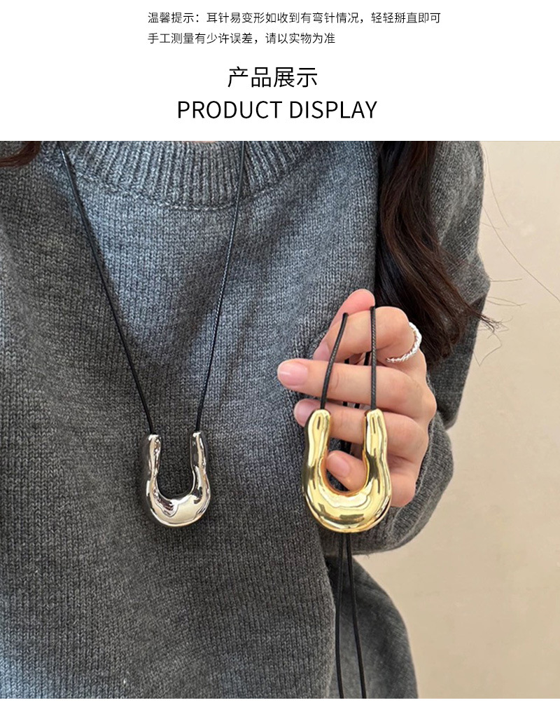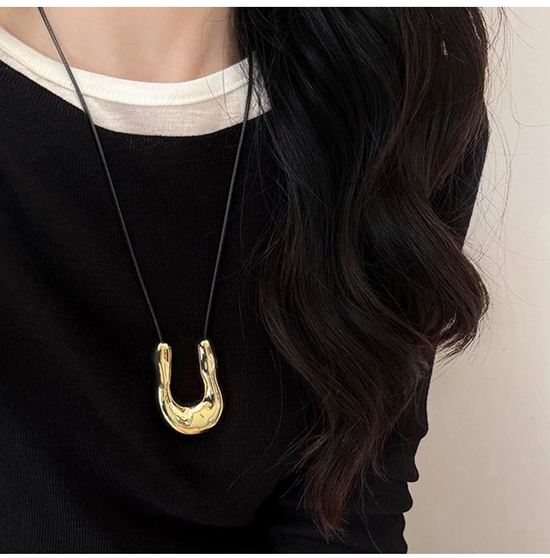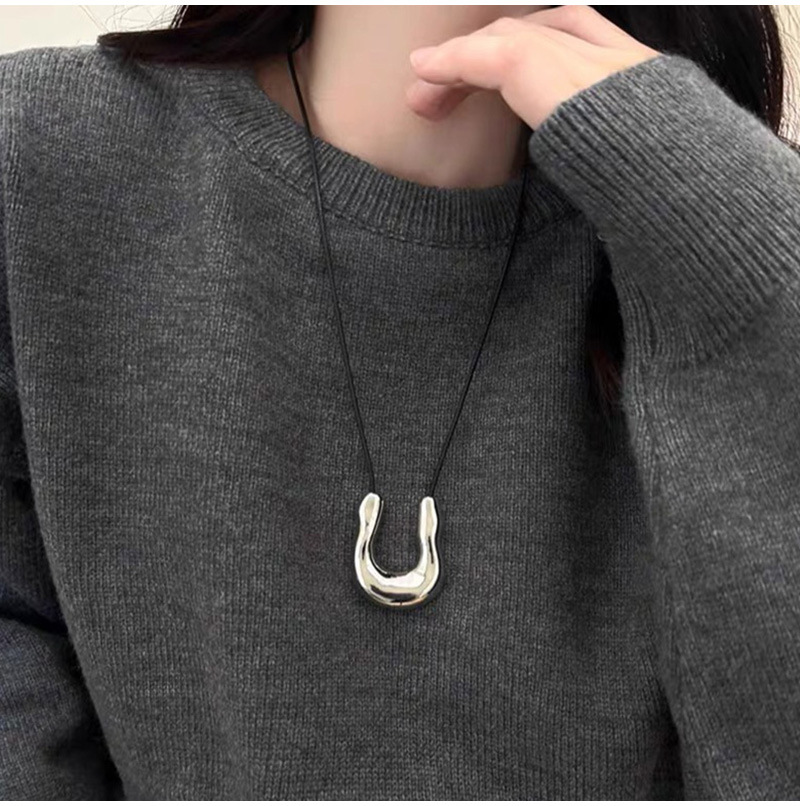 欧美跨境U形金属马蹄项链女轻奢小众长款配饰高级感吊坠毛衣链