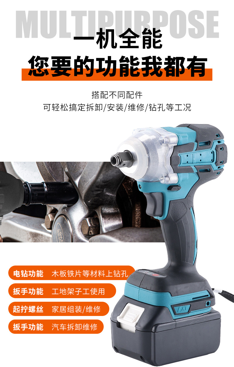 家用大功率汽修风炮起子机跨境外贸大扭力电动扳手多功能锂电扳手