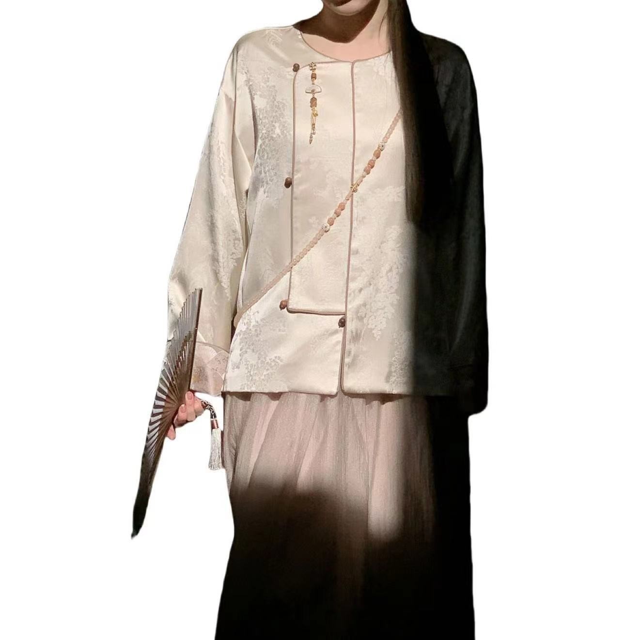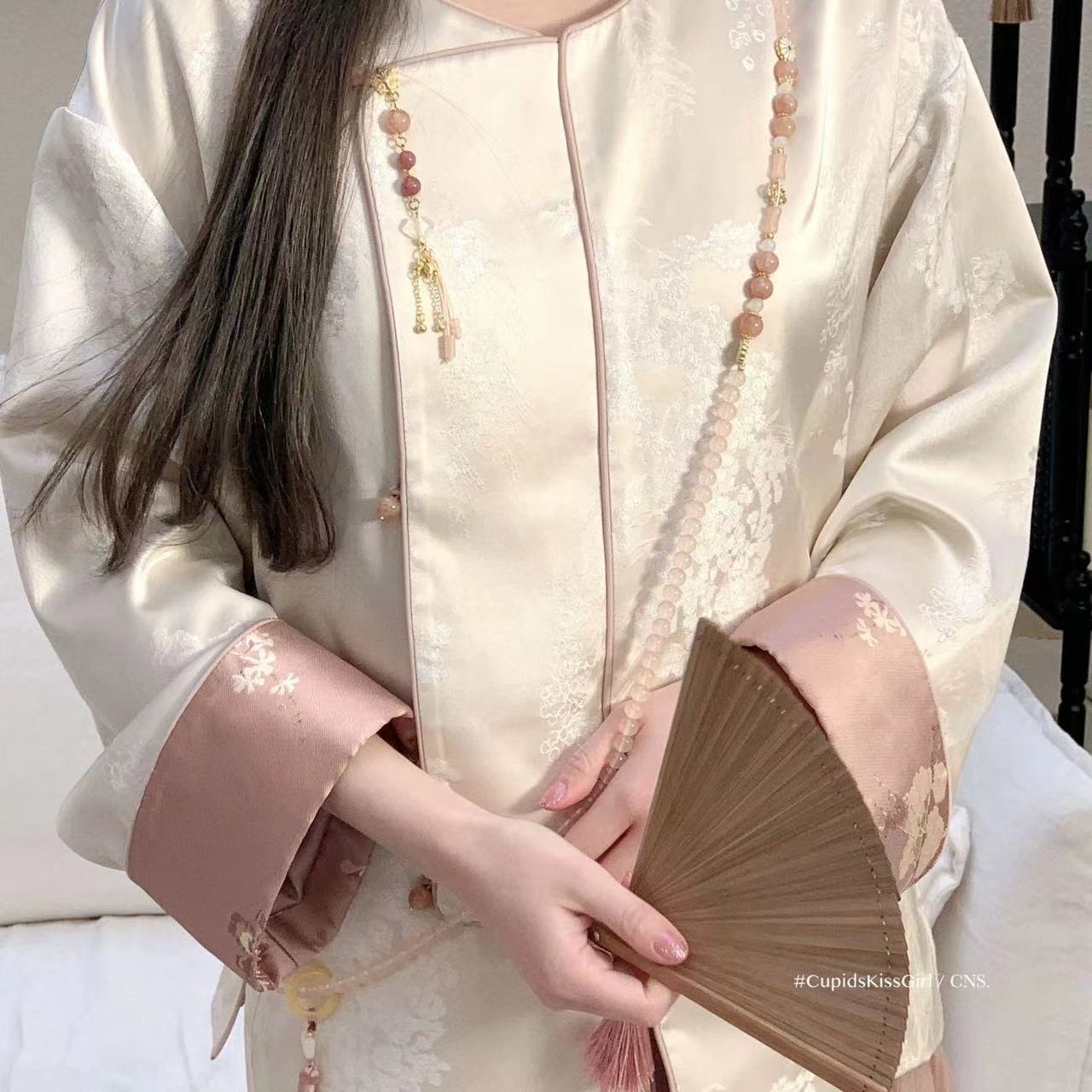 国风肉藕粉色串珠流苏项链新中式高级感长款斜挎链毛衣链配饰品
