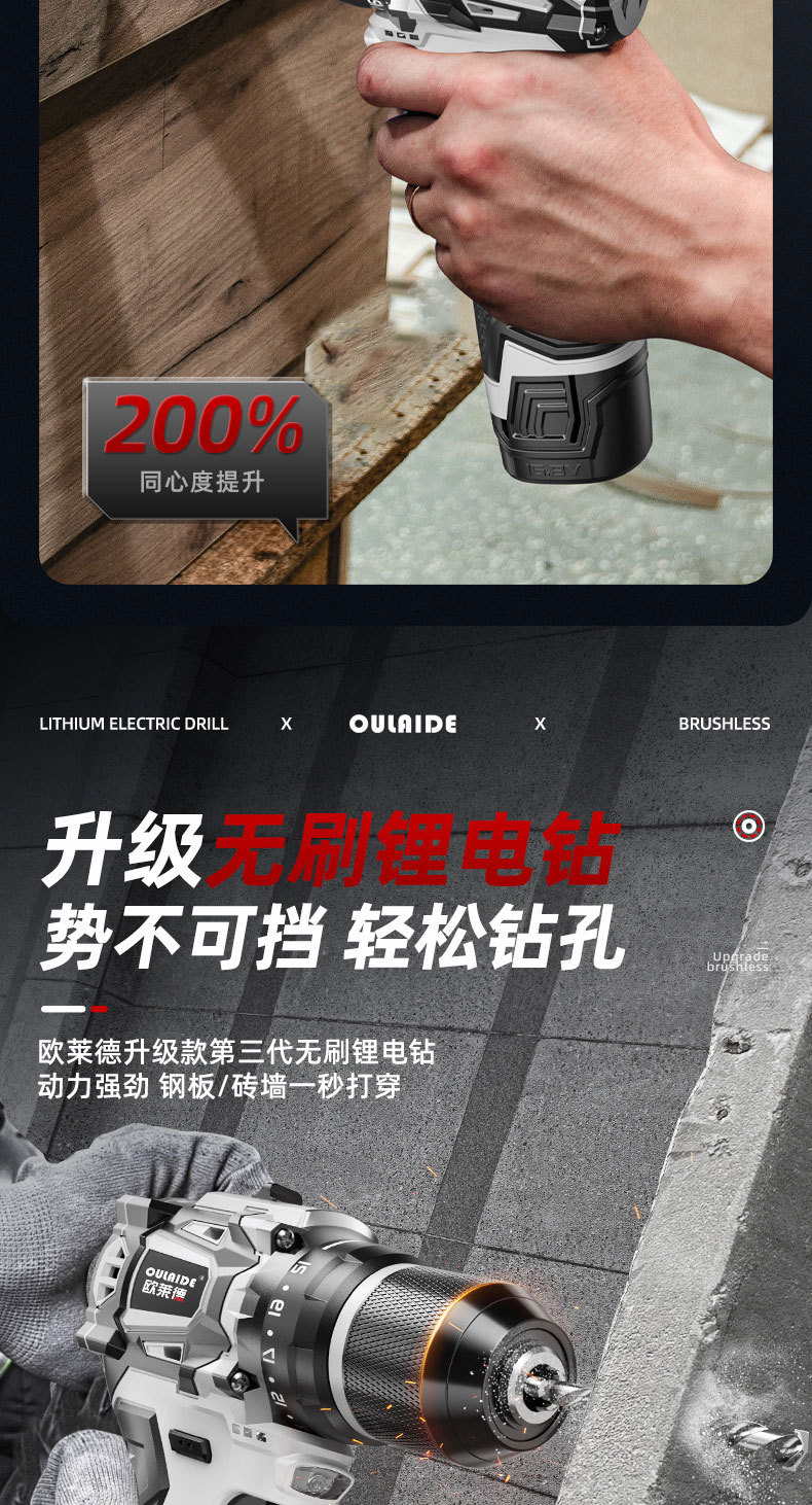 小钢炮纯铜无刷电钻手电钻充电式锂电钻小手枪钻多功能打孔起子机