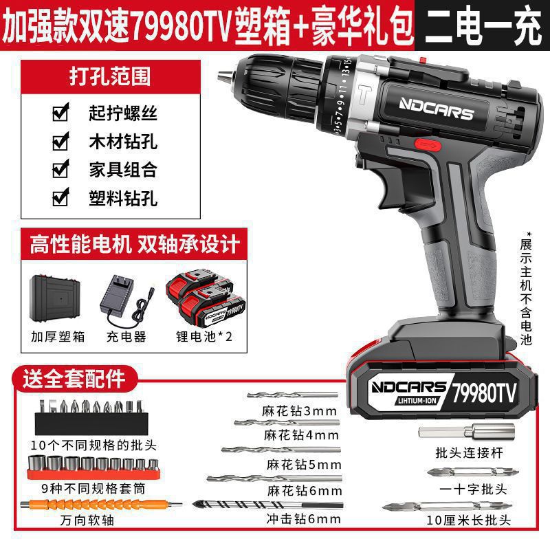 工业级超大功率手电钻锂电双速充电钻冲击钻家用多功能电动螺丝刀